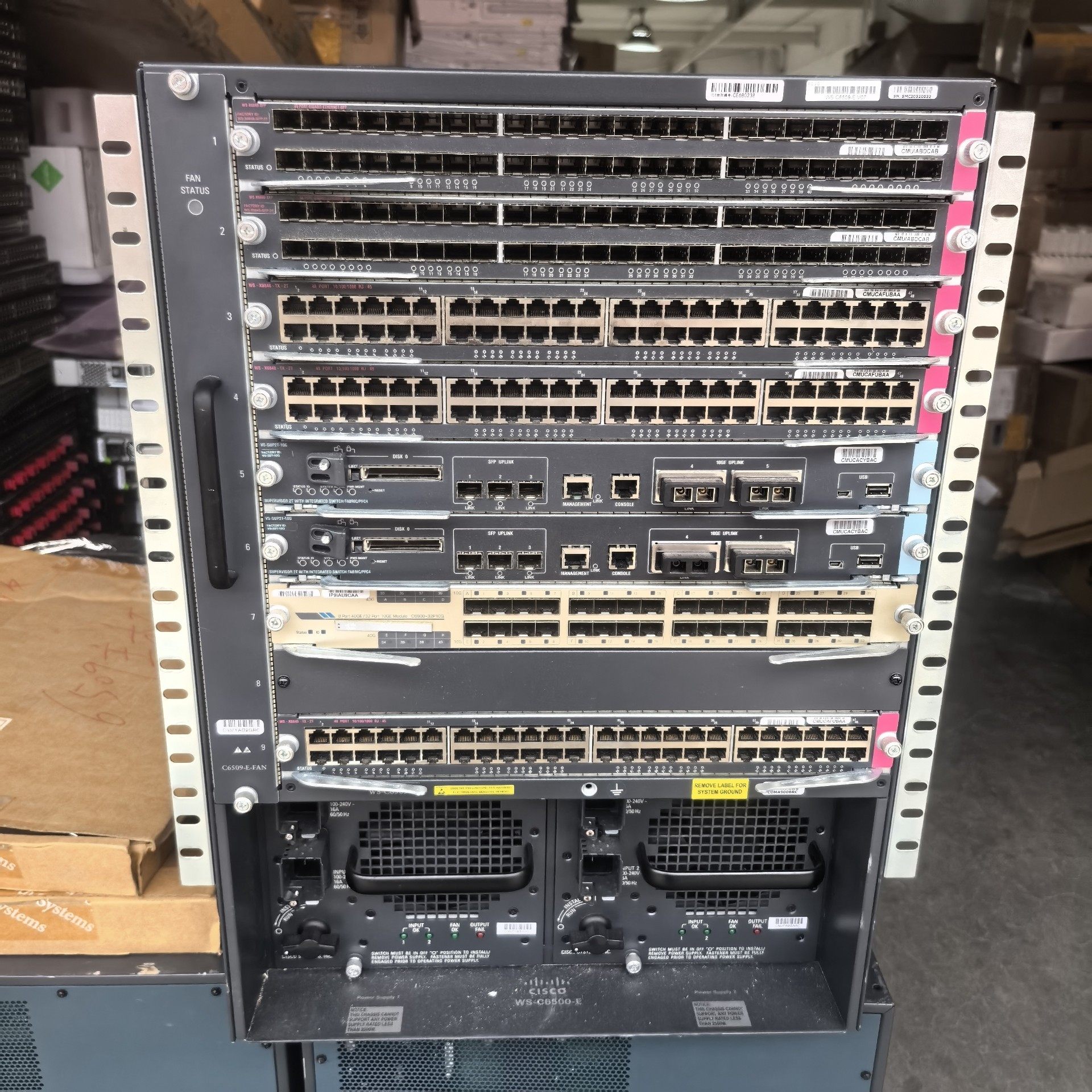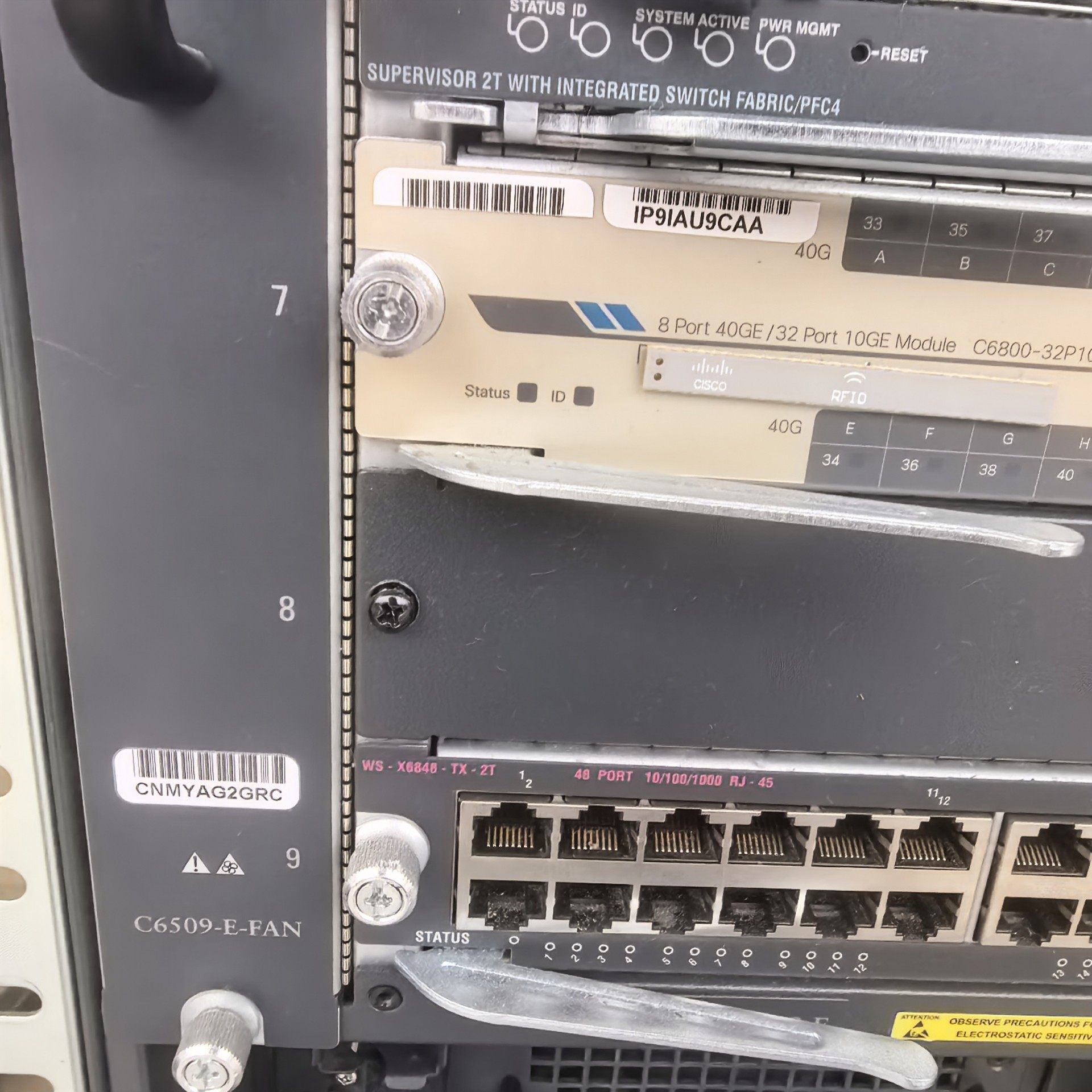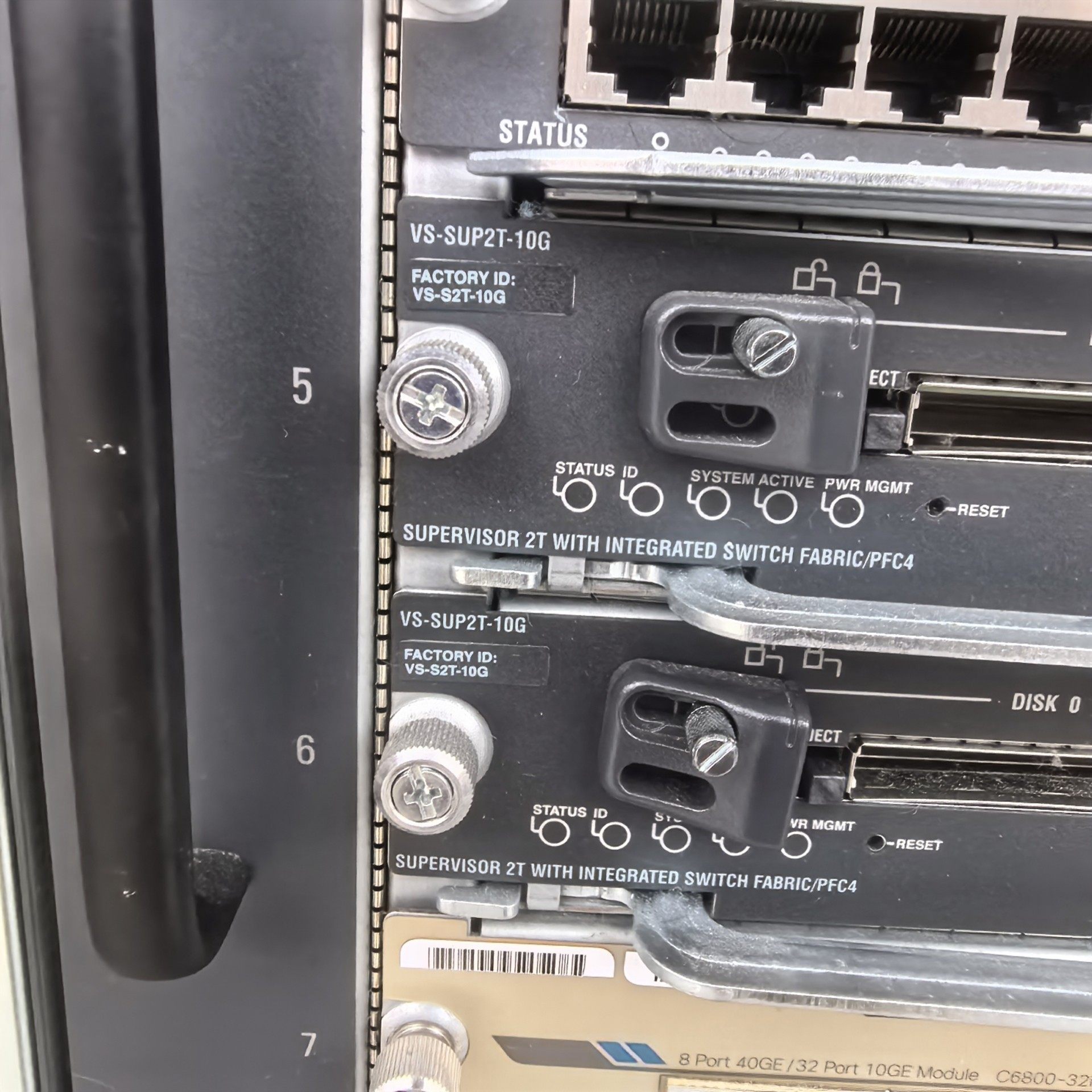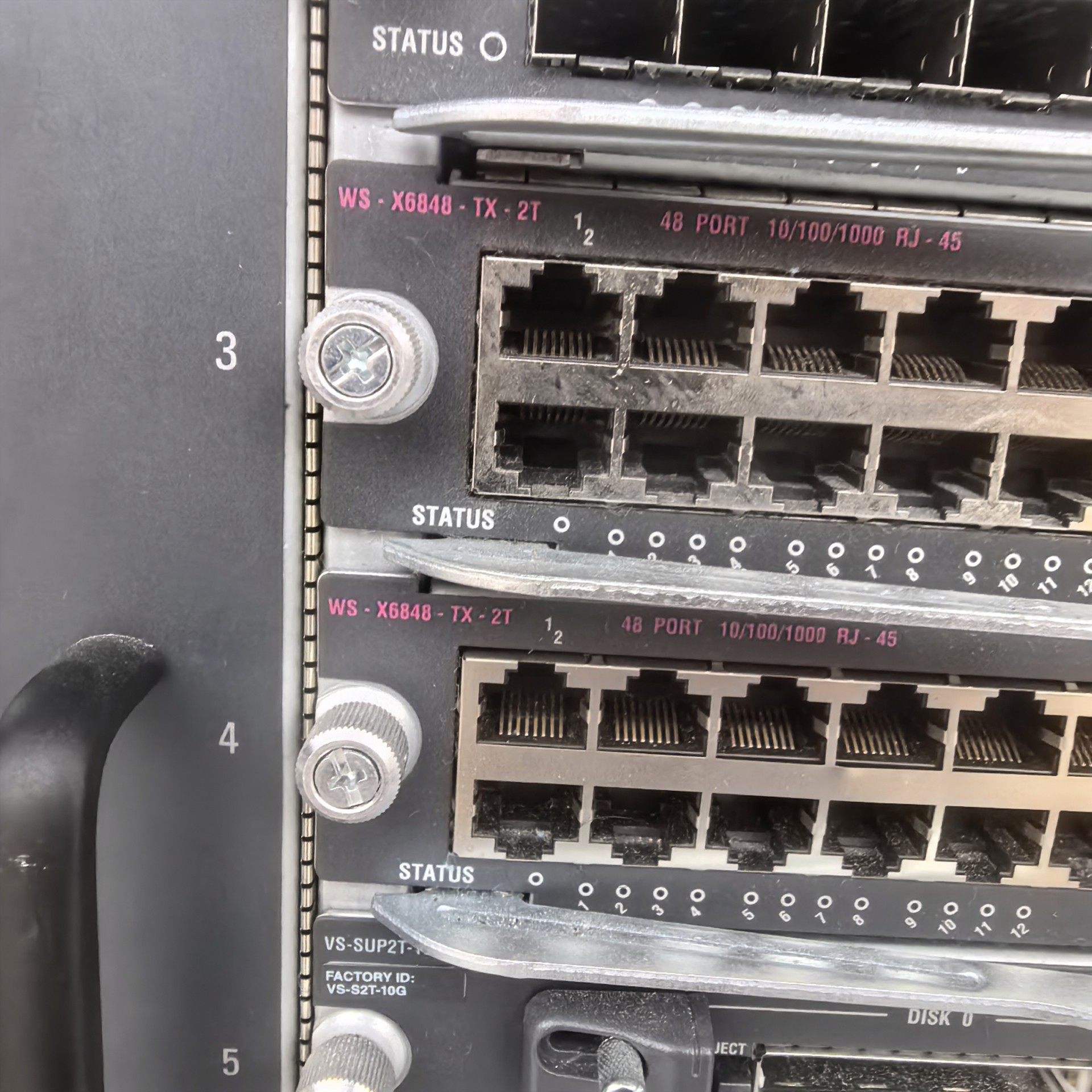 - 业务模块:WS-X6848-SFP*2, WS-X6848-TX-2T*3, VS-SUP2T-10G*2