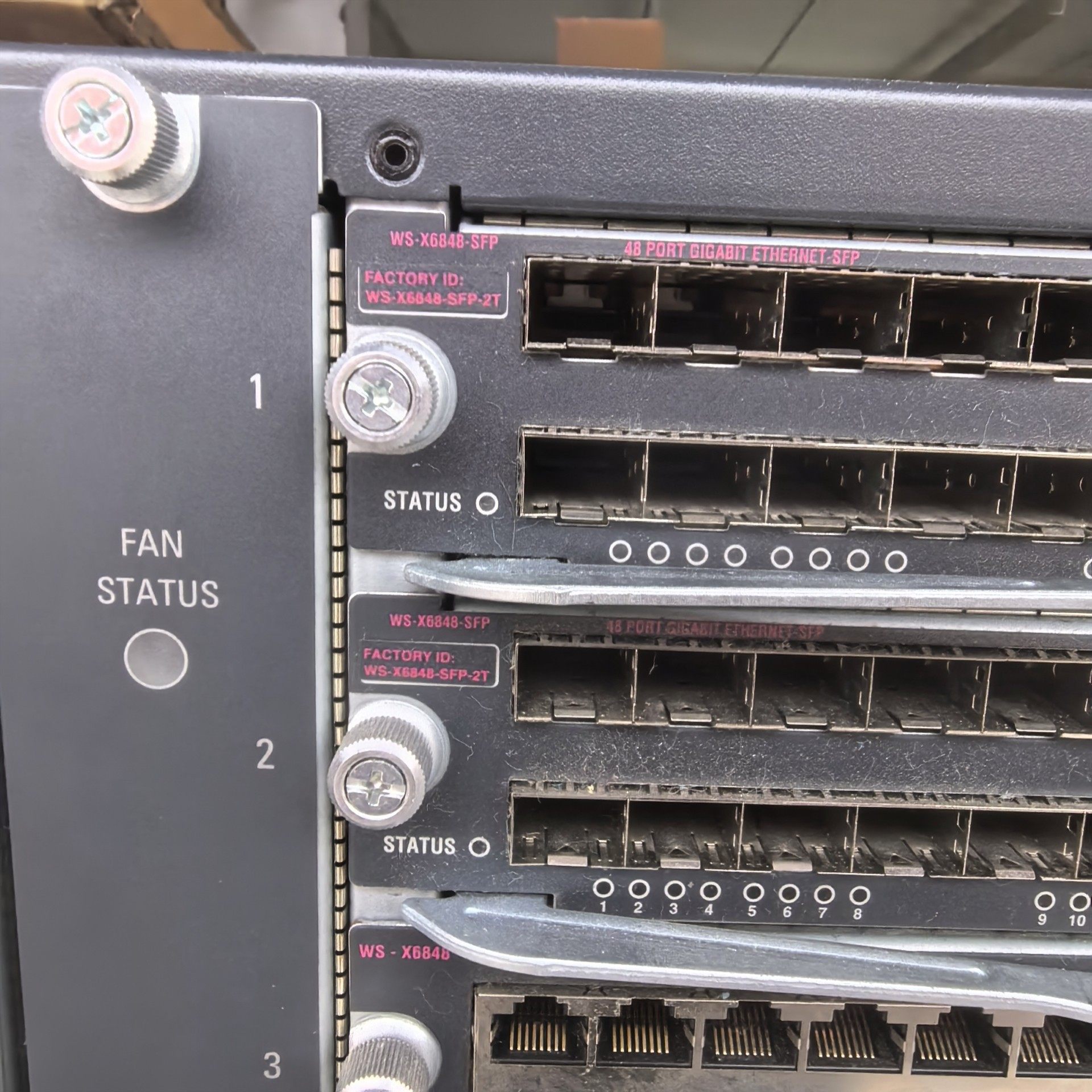 - 模块化设计:支持多种业务模块,如WS-X6848-SFP(48口SFP光接口模块)、WS-X6848-TX-2T(48口10/100/1000BASE-T电接口模块)等,可根据网络需求灵活配置。
