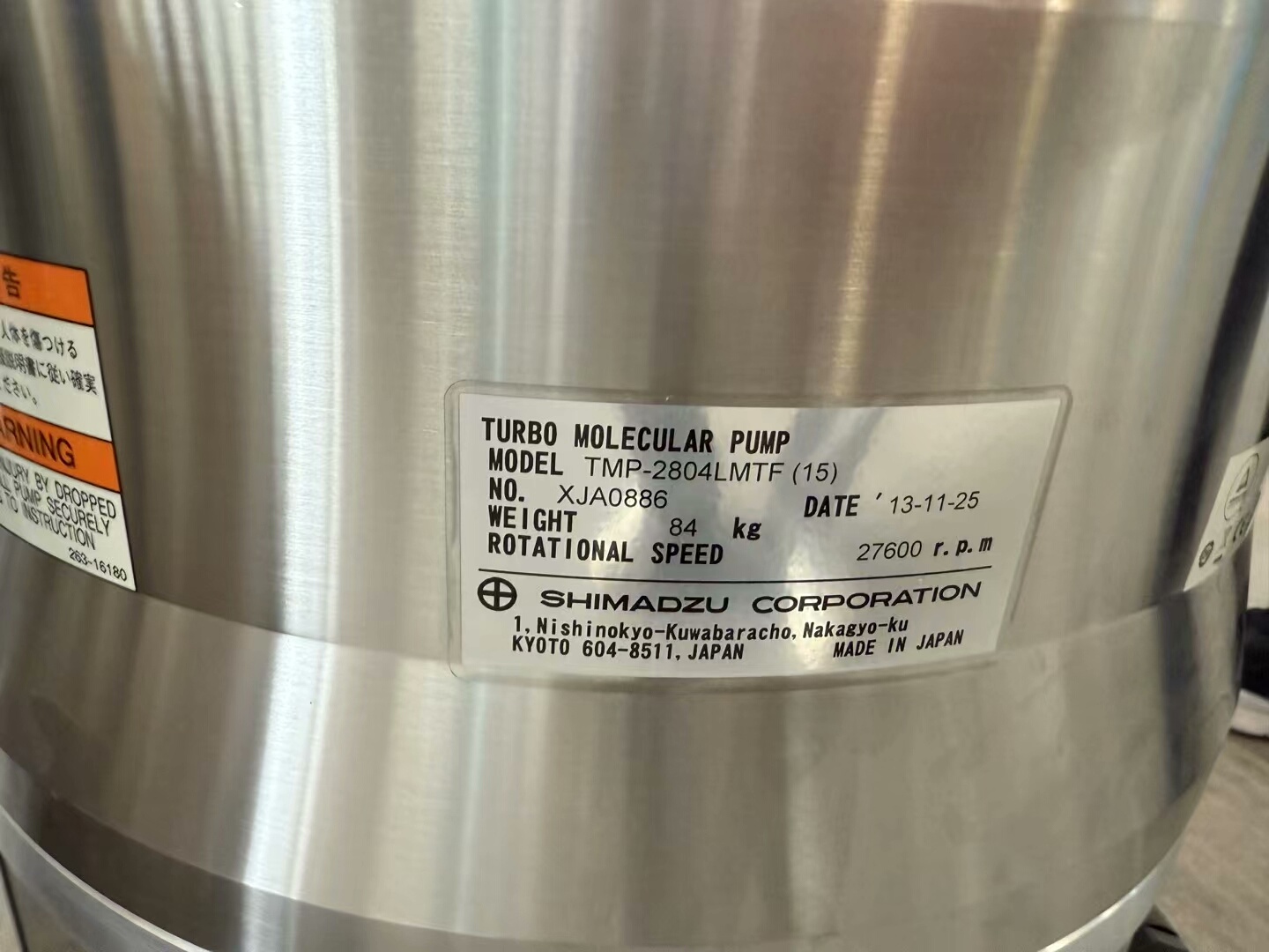 岛津 TMP-2804LMTF 分子泵是一款高性能真空获得设备,专为需要高真空环境的工业生产及科学研究场景设计。设备采用不锈钢材质打造,整体呈圆柱形结构,顶部集成控制面板与专用控制器,实现便捷操作与精准控制,确保稳定高效的真空抽取能力。