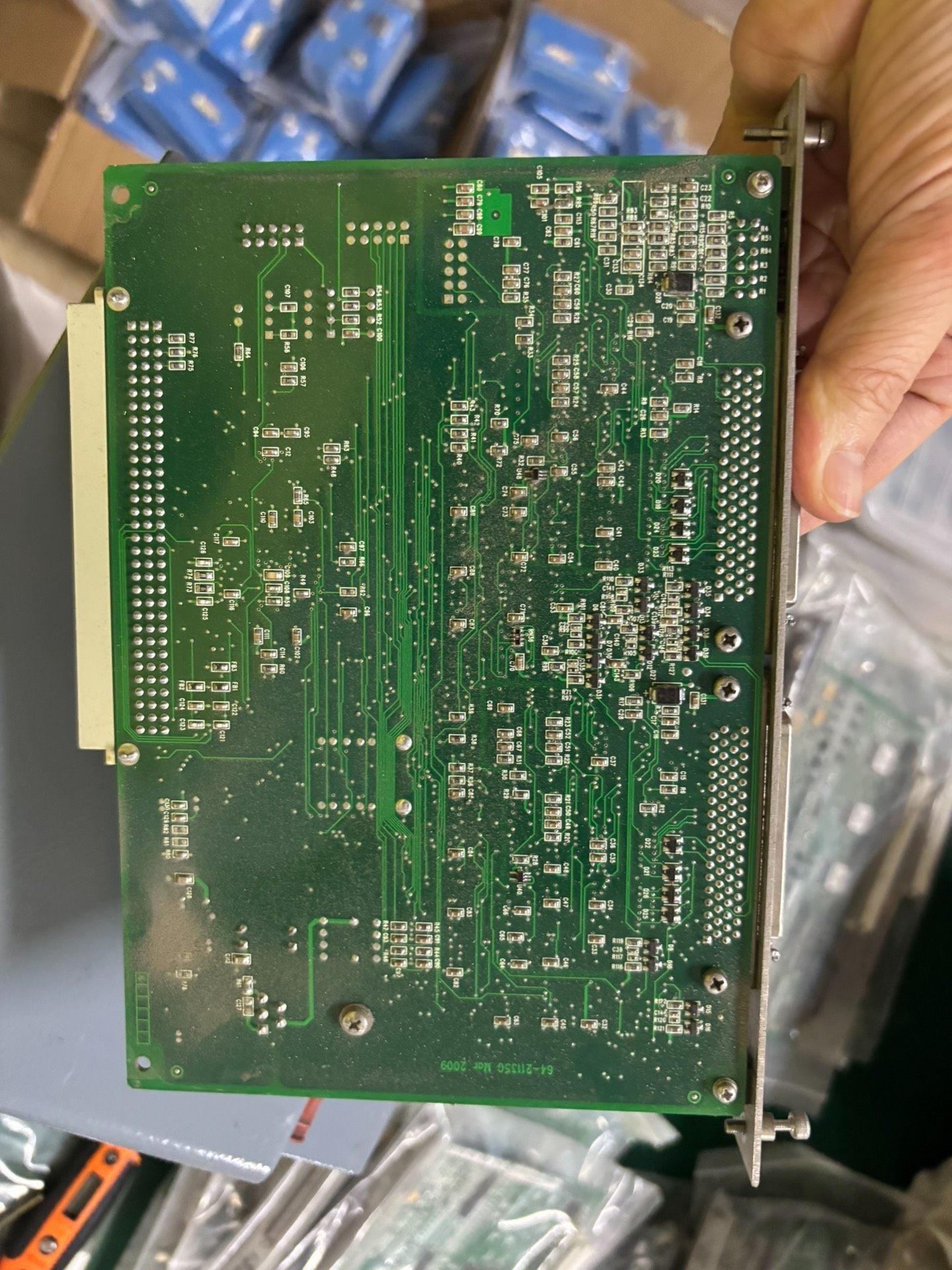 未知品牌 03-2130-60E 伺服驱动板是一款应用于工业自动化领域的核心控制部件,主要用于伺服电机的驱动与信号处理。该驱动板采用绿色PCB基板,集成了多颗高性能集成电路芯片、电容、电阻及精密连接器,通过金属框架固定,确保在工业环境下的稳定运行。