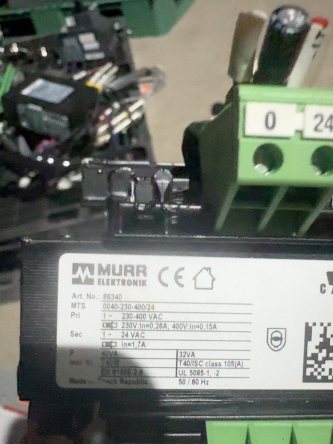 本产品为穆尔(MURR)品牌的工业用变压器拆机件,型号为0040-230-400/24,订货号85340,专为工业自动化控制场景设计,提供稳定的电压转换功能。