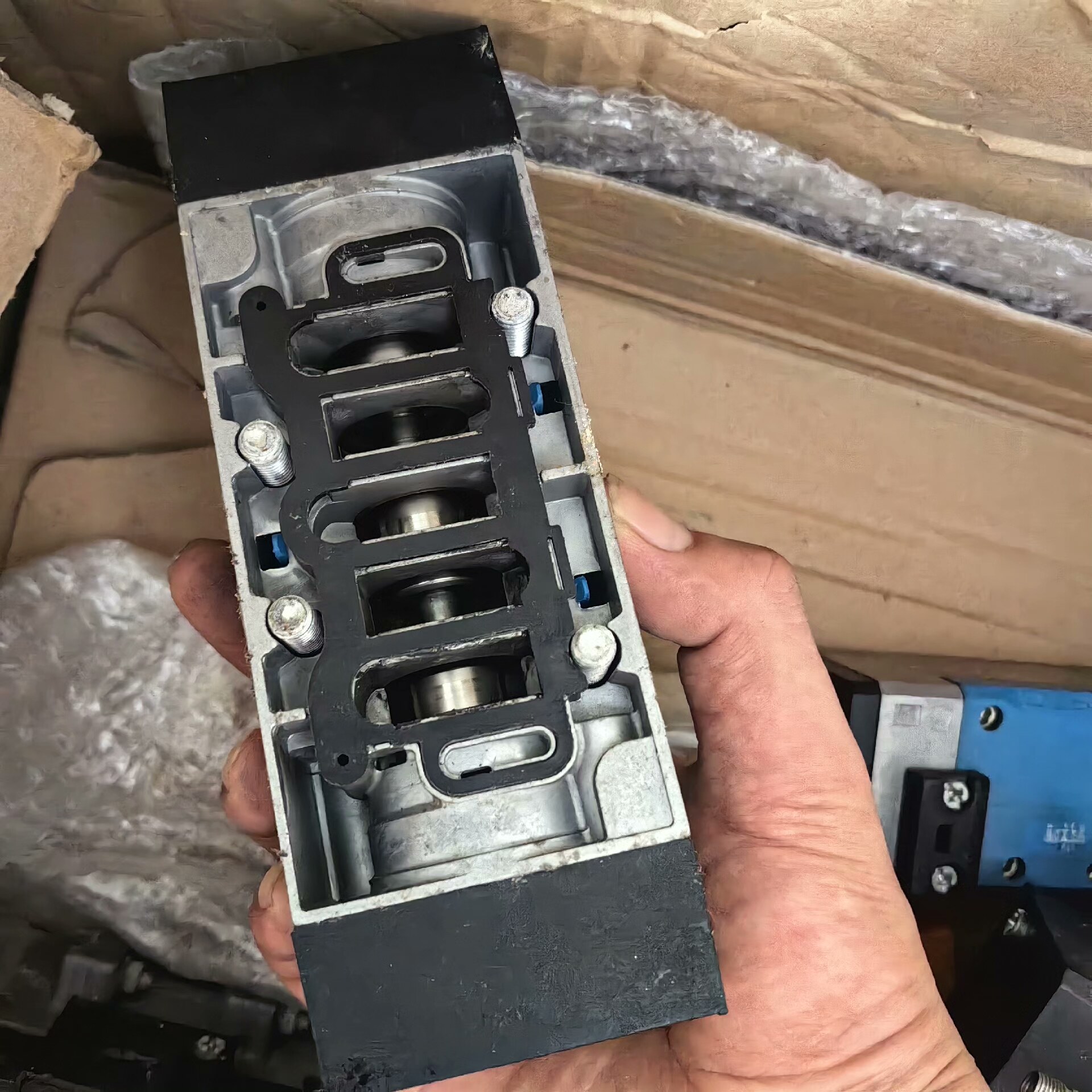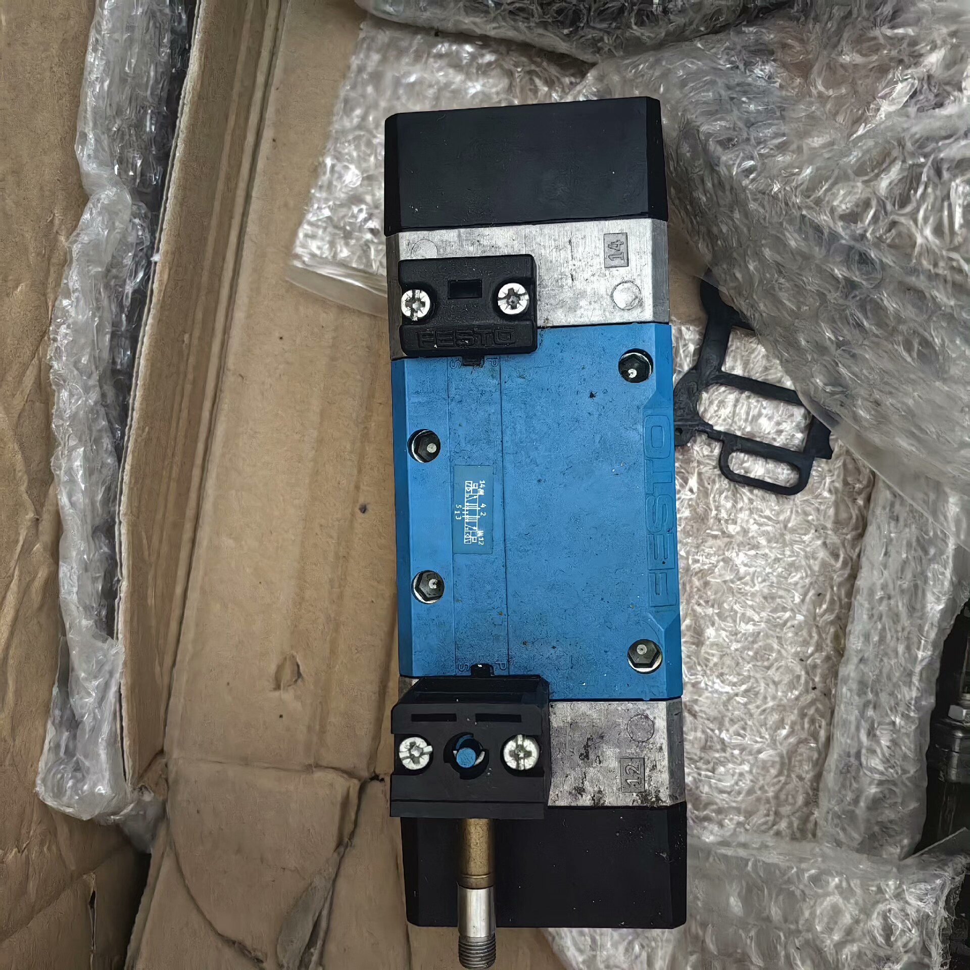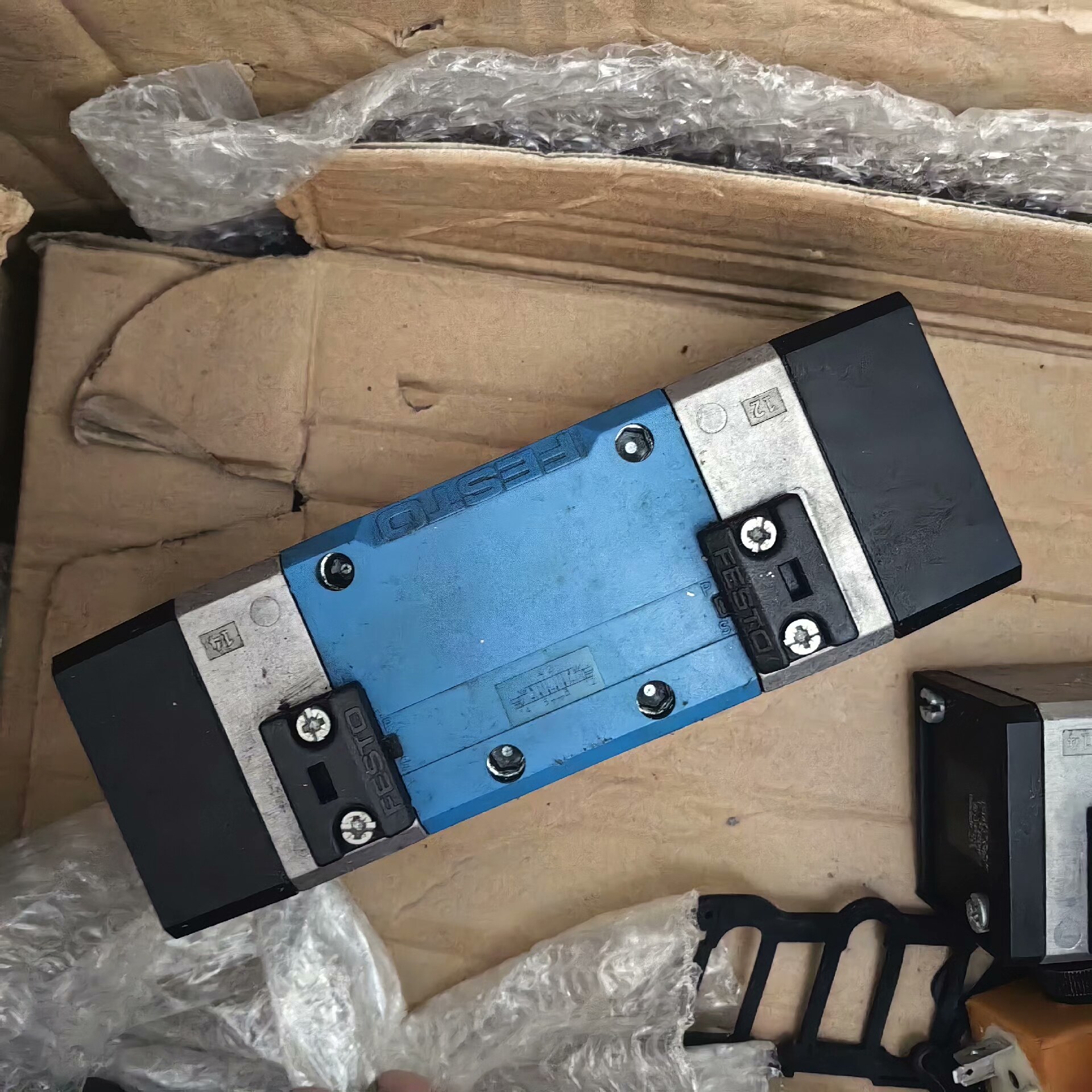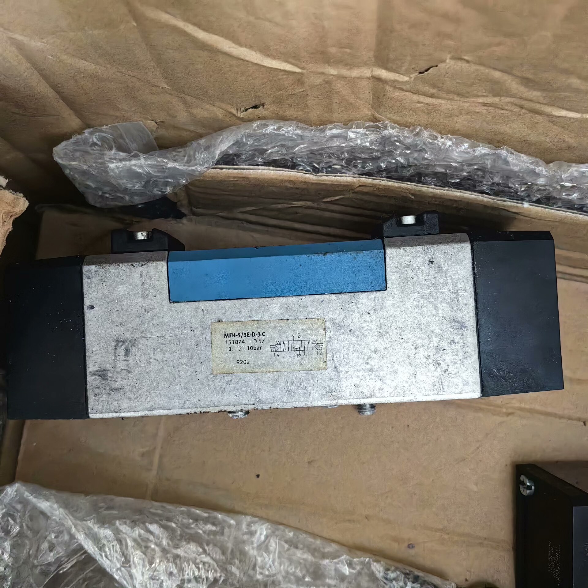 FESTO MFH-5/3E-D-3-C 电磁阀是一款高性能的气动控制元件,采用优质材料制造,具有结构紧凑、响应迅速、可靠性高等特点。黑色外壳设计,表面虽有轻微划痕,但不影响内部核心部件的正常工作,确保在工业环境中稳定运行。