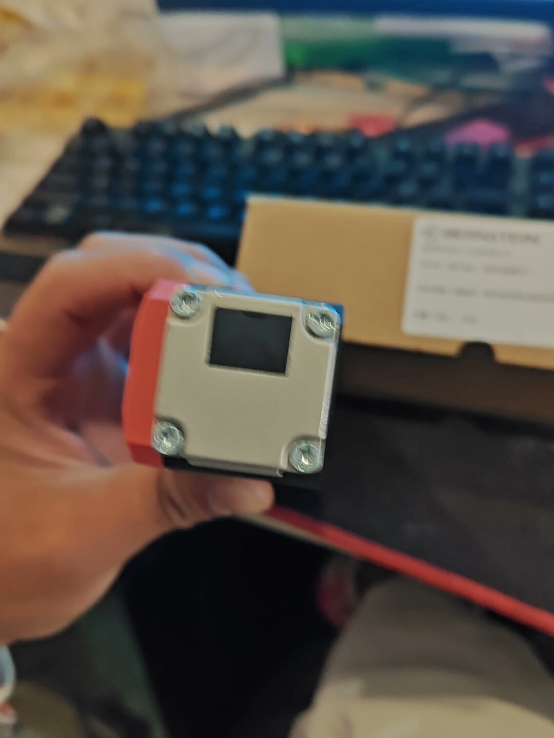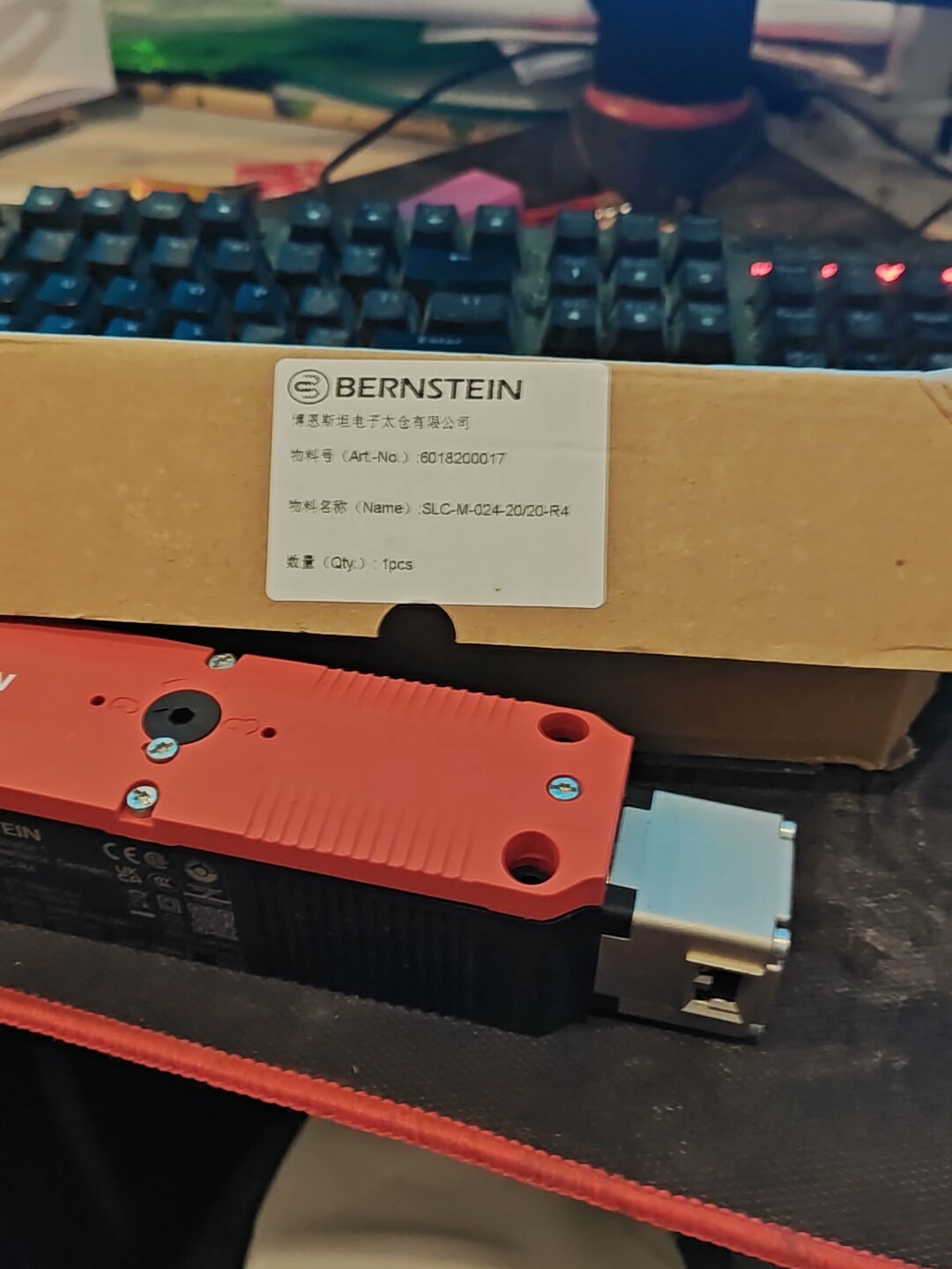 BERNSTEIN SLC-M-024-20/20-R4 安全门锁是一款工业级安全防护产品,采用电磁开启方式,专为工业自动化设备的安全门防护设计。产品外壳为红色,底座为黑色,整体结构坚固耐用,适用于各类需要高安全性的机械加工、自动化生产线等场景。