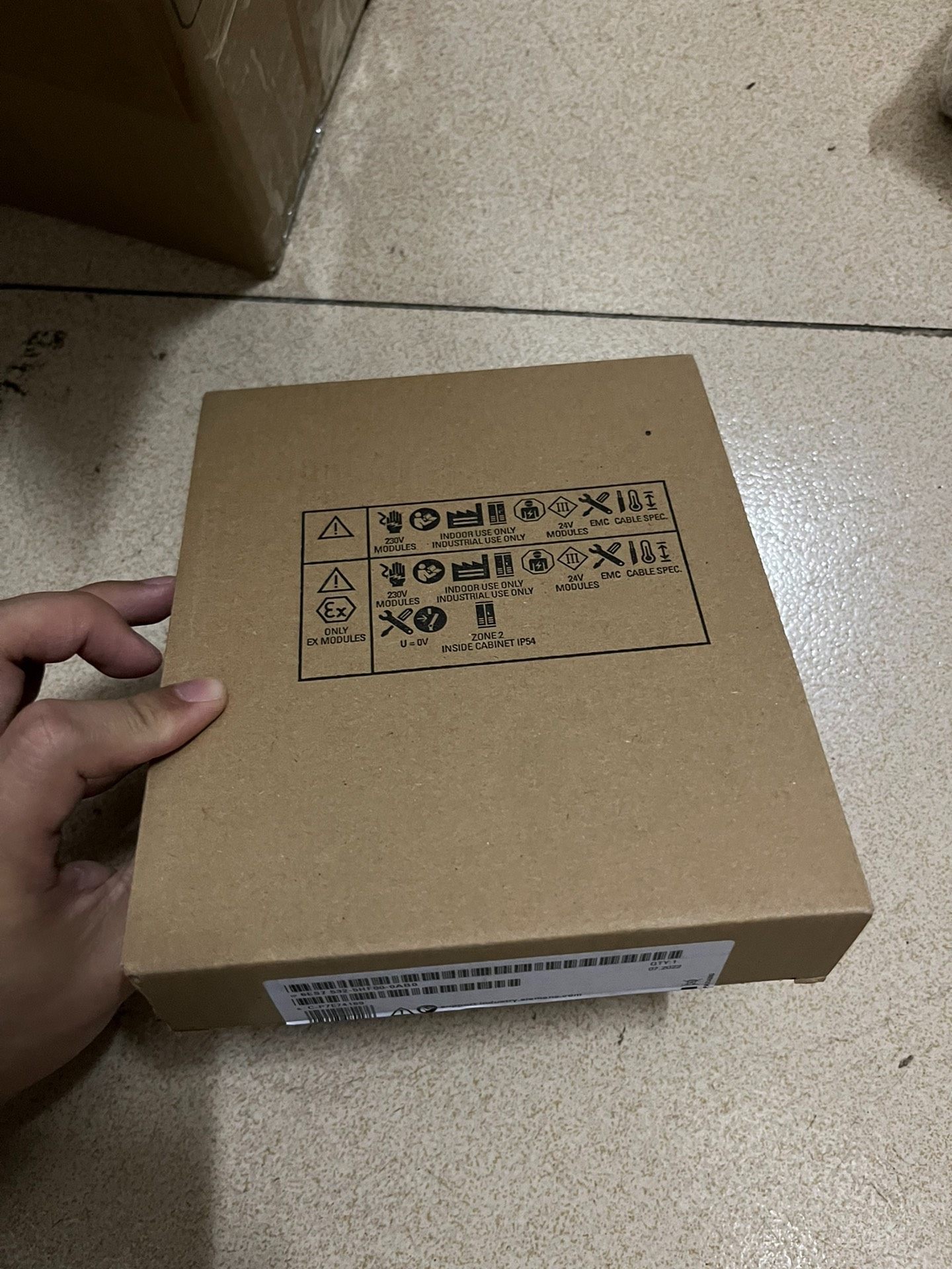 产品包装为原厂纸箱,标签标注型号“6ES7 532-5HF00-0AB0”、数量“QTY:1”及生产日期“07 2022”,包装盒有字迹,为正品标识。