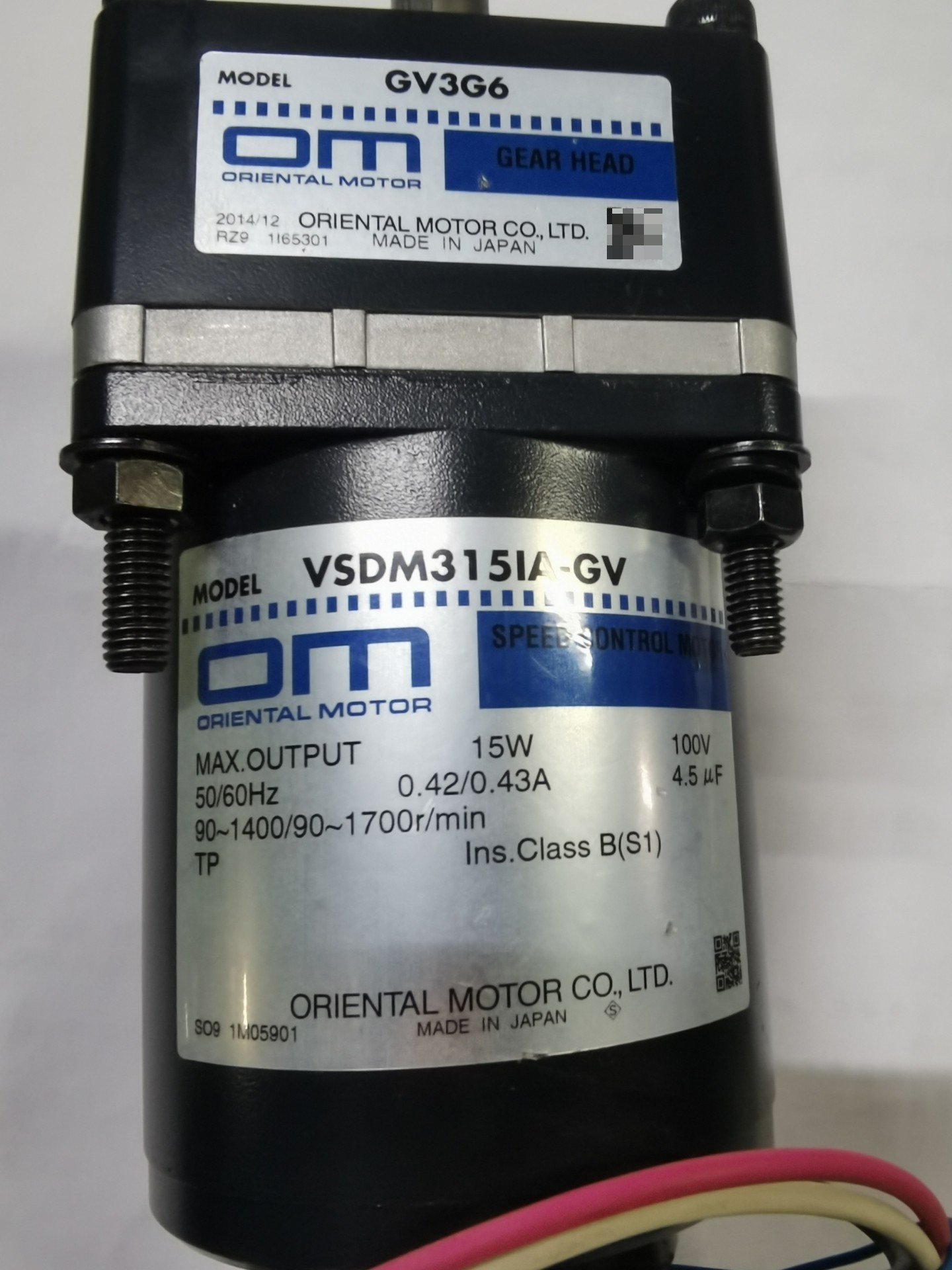 全新正品日本进口东方(Oriental Motor)步进电机与齿轮箱组合套装,包含型号为VSDM315IA-GV的步进电机和GV3G6齿轮箱,现货供应。电机输出功率15W,适配100V电压,具备稳定的转速控制性能,绝缘等级为B级(S1工作制),确保长期可靠运行。齿轮箱与电机完美匹配,提供精准的减速传动,整体结构紧凑,安装便捷。
