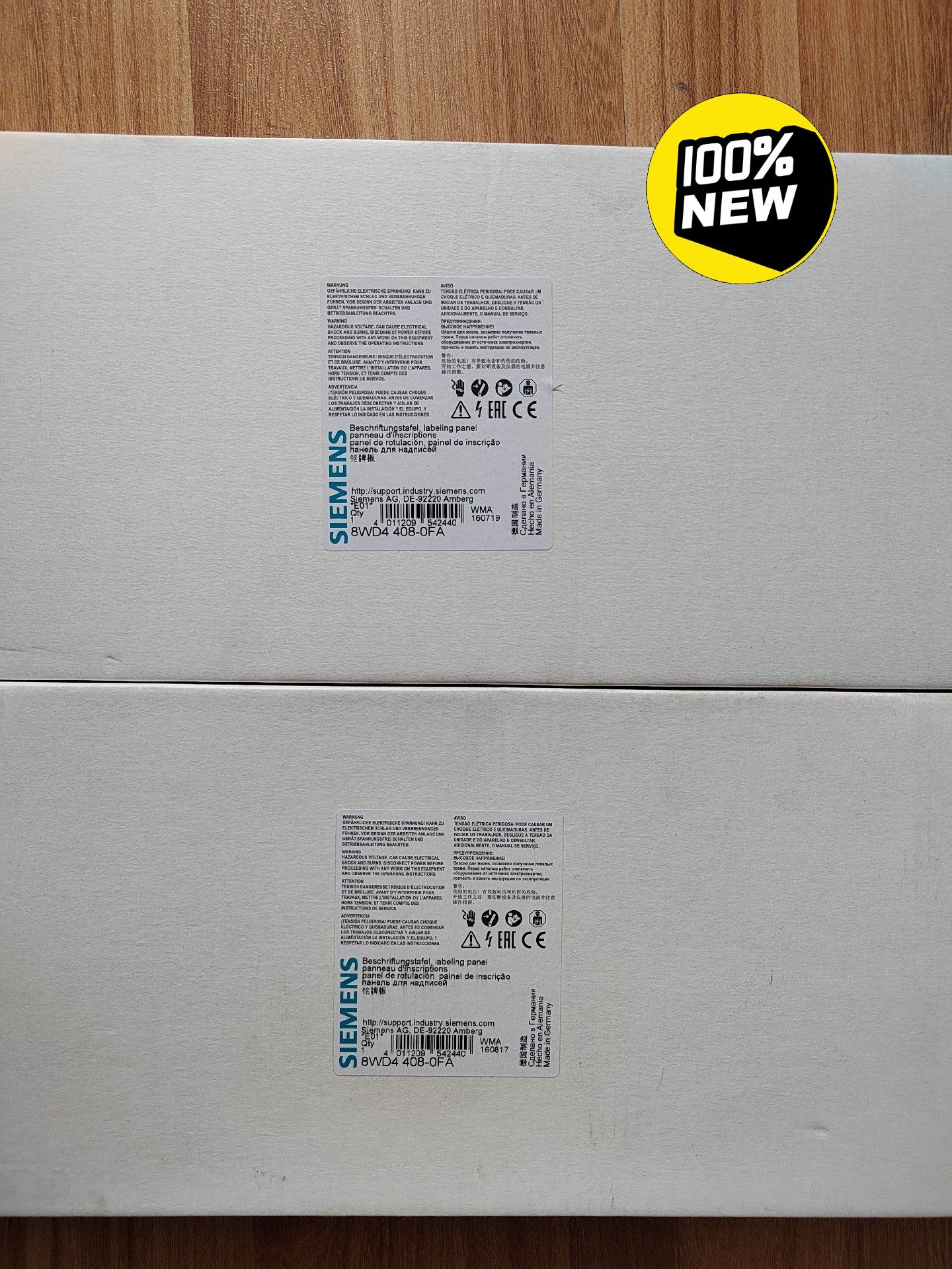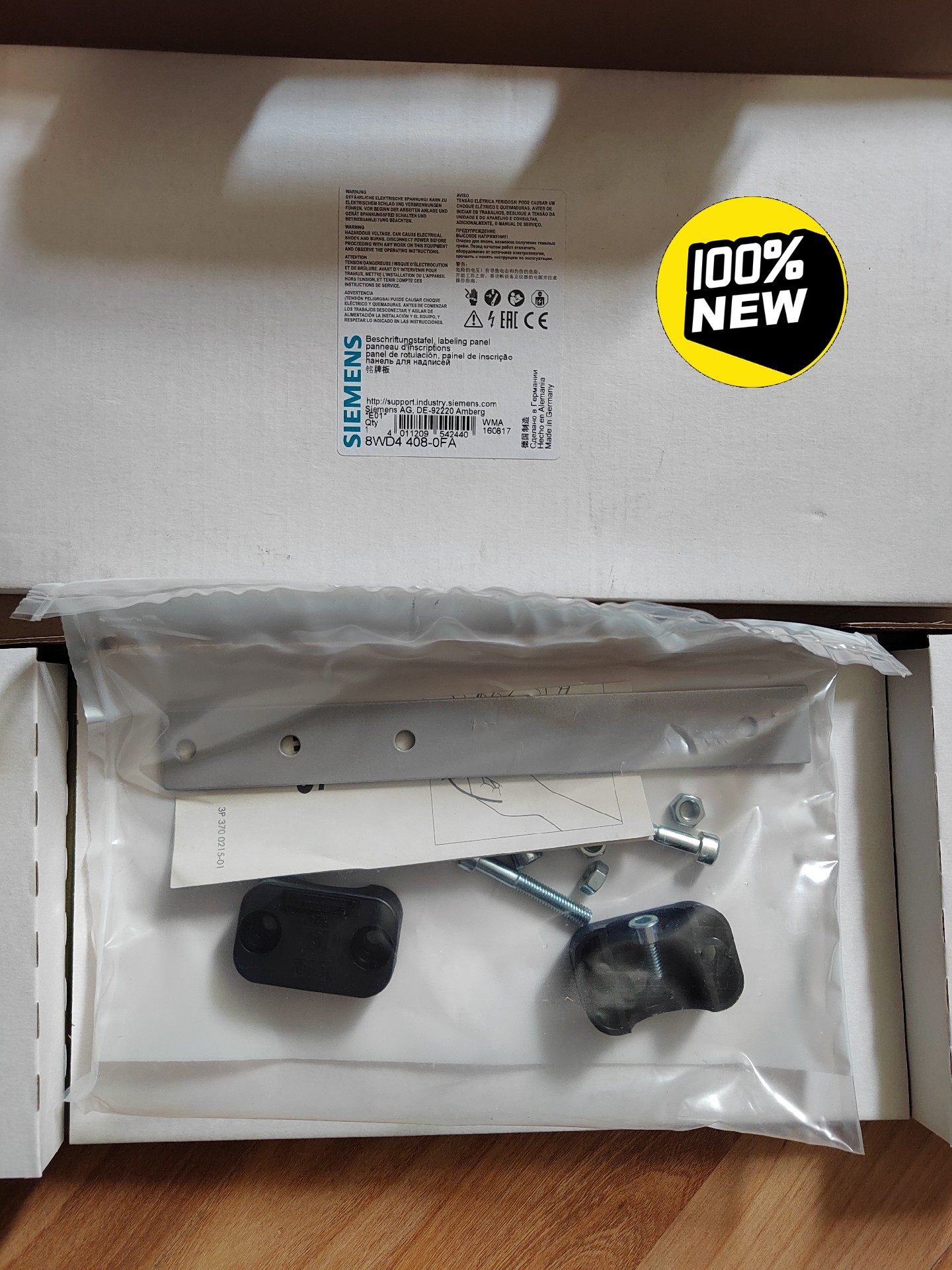 本产品为全新原装西门子信号灯柱铭牌,型号8WD4408-0FA,实物拍摄,确保正品品质。铭牌标签信息清晰完整,包含西门子品牌标识、具体型号及多语言安全警告说明,符合工业设备标识规范,安装便捷,适用于各类工业信号灯柱的信息展示与标识。