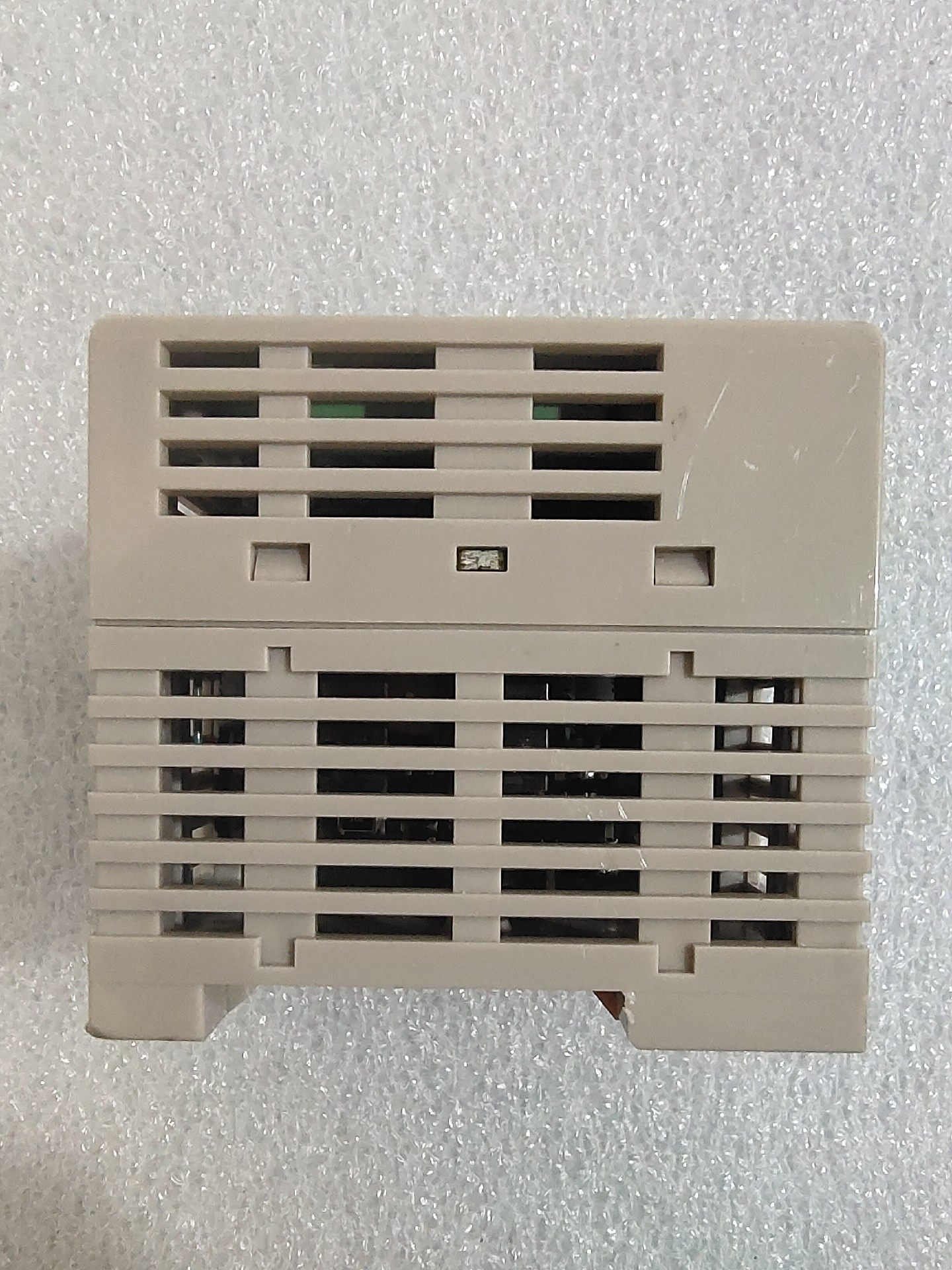 - 紧凑型设计:米白色塑料外壳,矩形结构,尺寸小巧,便于安装在控制柜或导轨上,节省安装空间。