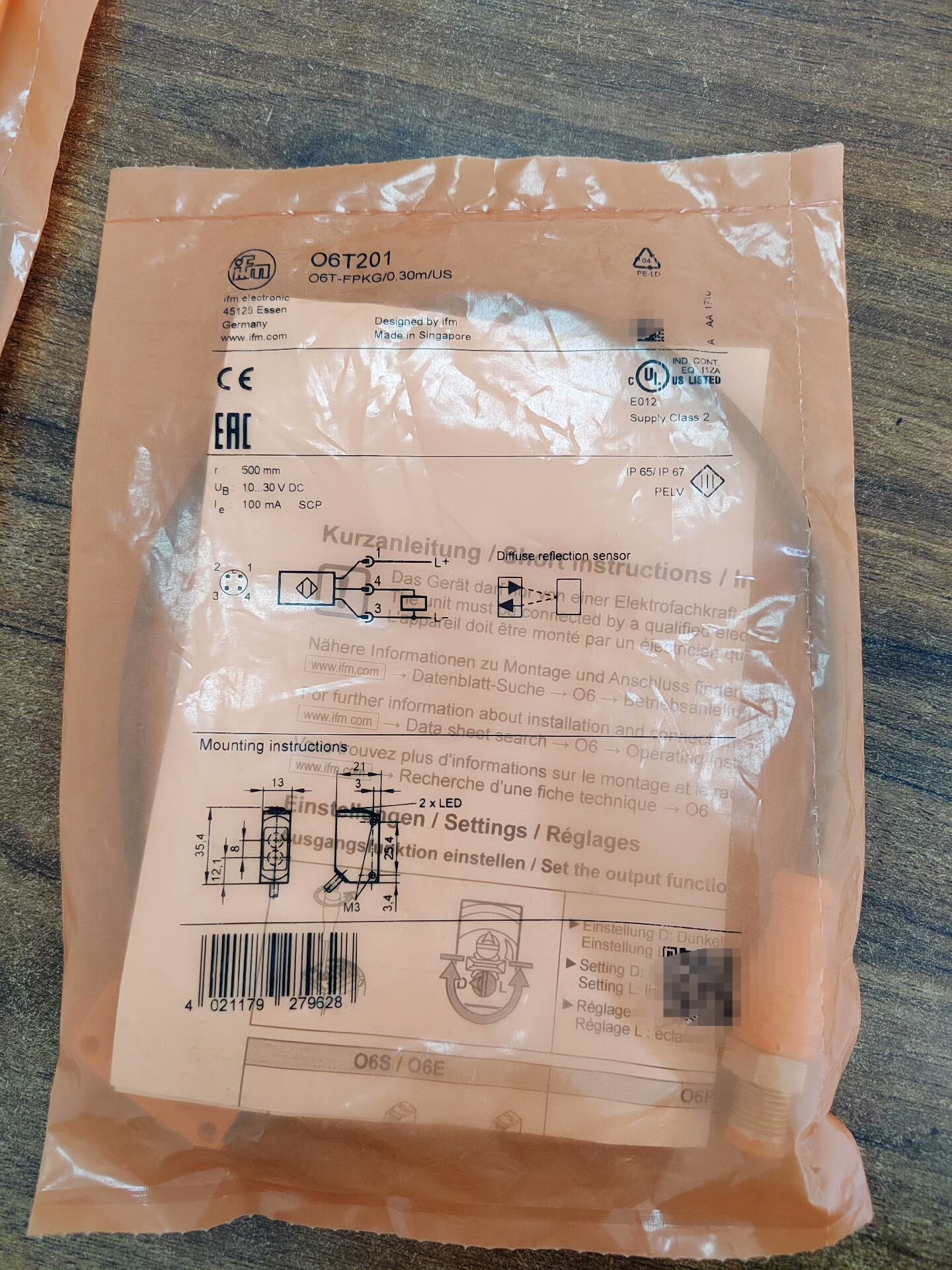 IFM易福门 O6T201 漫反射传感器产品说明