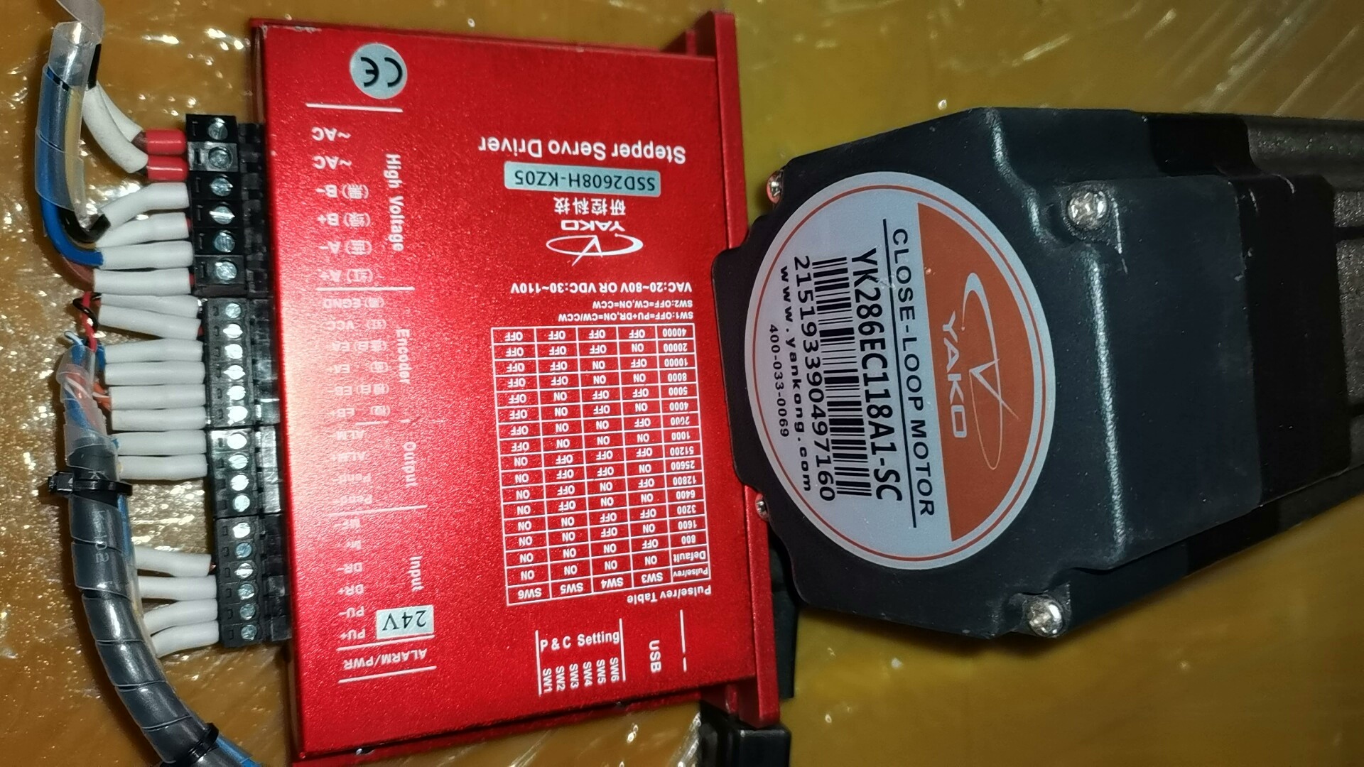 本产品为研控品牌步进电机与驱动套装,包含SSD2608H-KZ05型号驱动器和YK286EC118A1-SC型号带刹车步进电机,均为二手拆机货,功能包好,具体成色以实物图片为准。