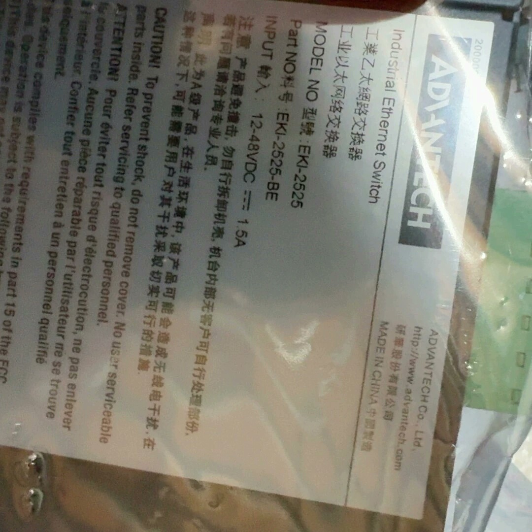 研华EKI-2525是一款专为工业环境设计的以太网交换机,本产品为全新未拆封状态,无原包装盒,采用银色防静电塑料袋包装,确保运输和存储过程中的安全性。