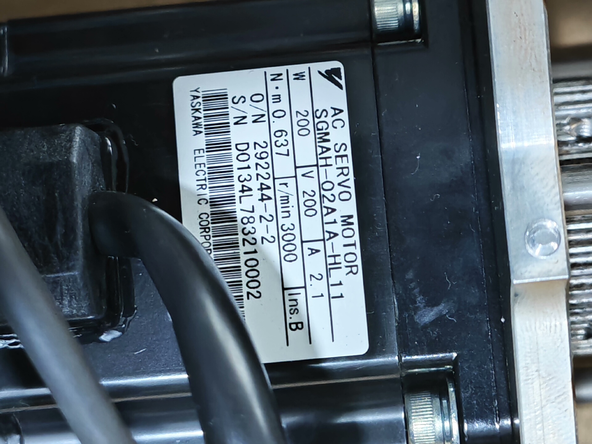 本产品为安川电机(Yaskawa)生产的SGMAH-02A1A-HL11型号伺服电机,是爱德普机器人二轴专用驱动电机。该电机为二手拆机品,经过功能检测确认正常,适用于工业机器人关节驱动等高精度控制场景。