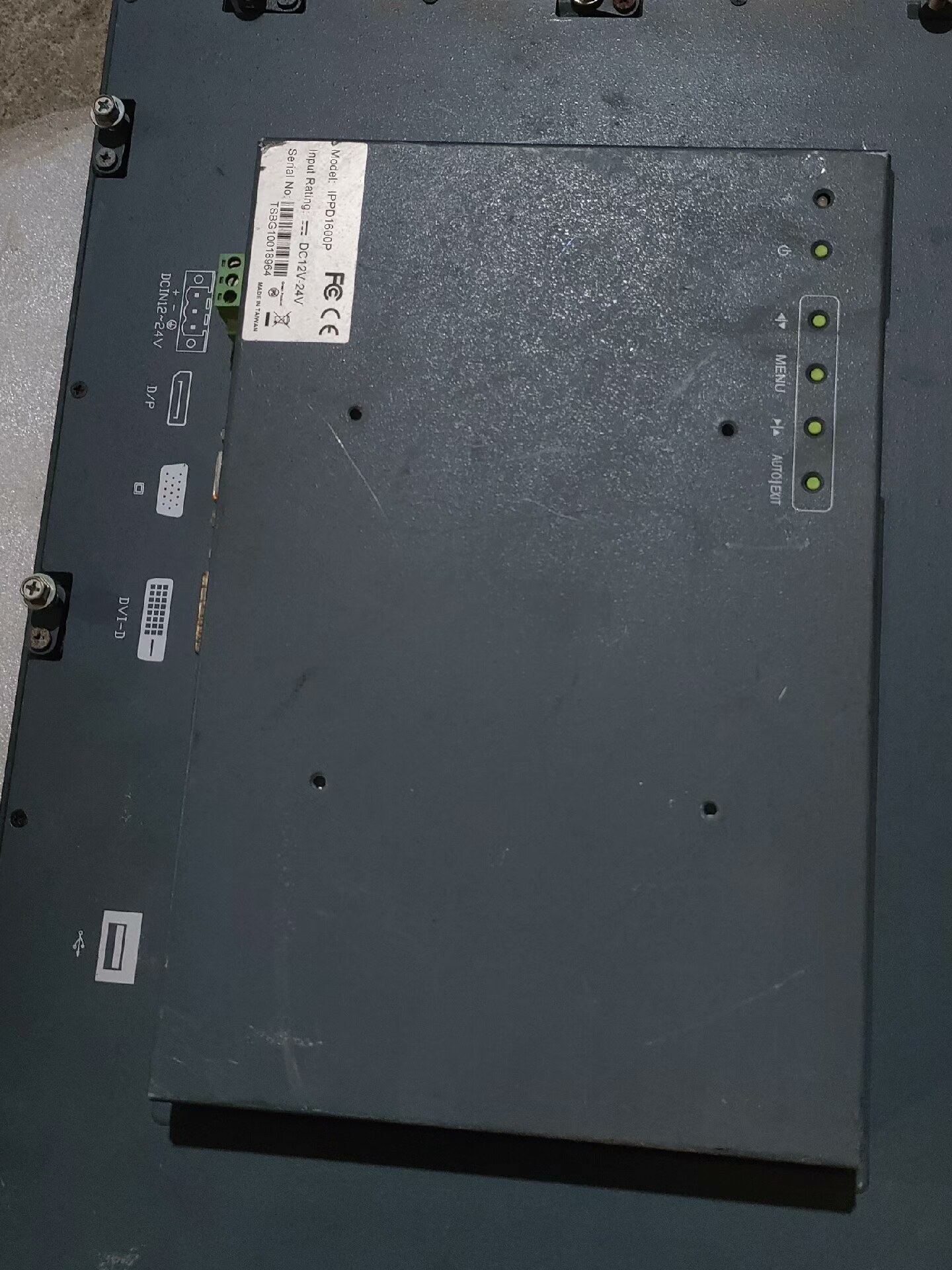 本产品为拆机工业显示器,型号为IPPD1600P,输入电压范围DC12V-24V,适用于各类工业控制场景。设备经过拆机处理,外观存在轻微使用痕迹(如表面划痕),但核心显示功能正常,是工业自动化设备显示与操作的理想选择。