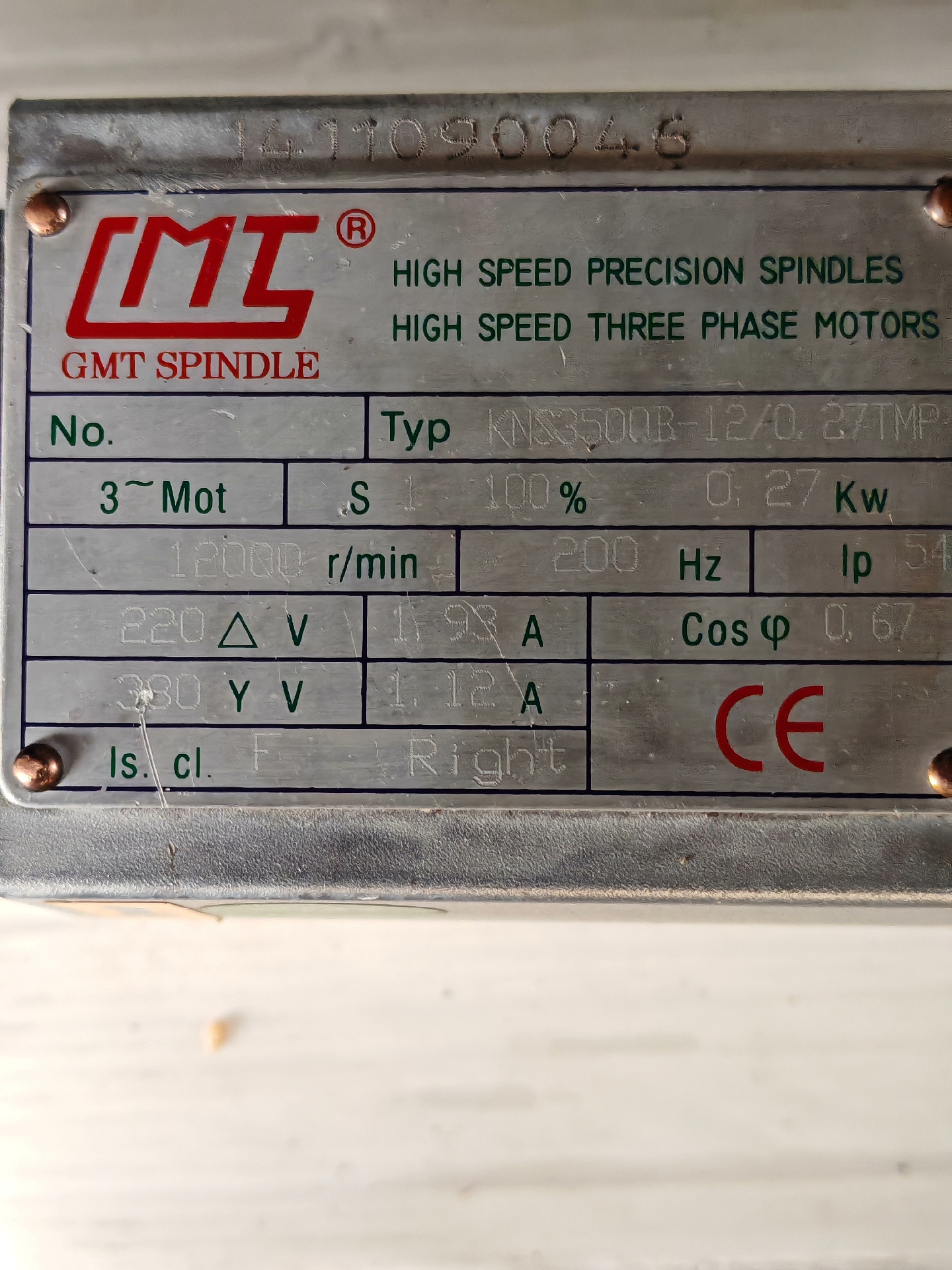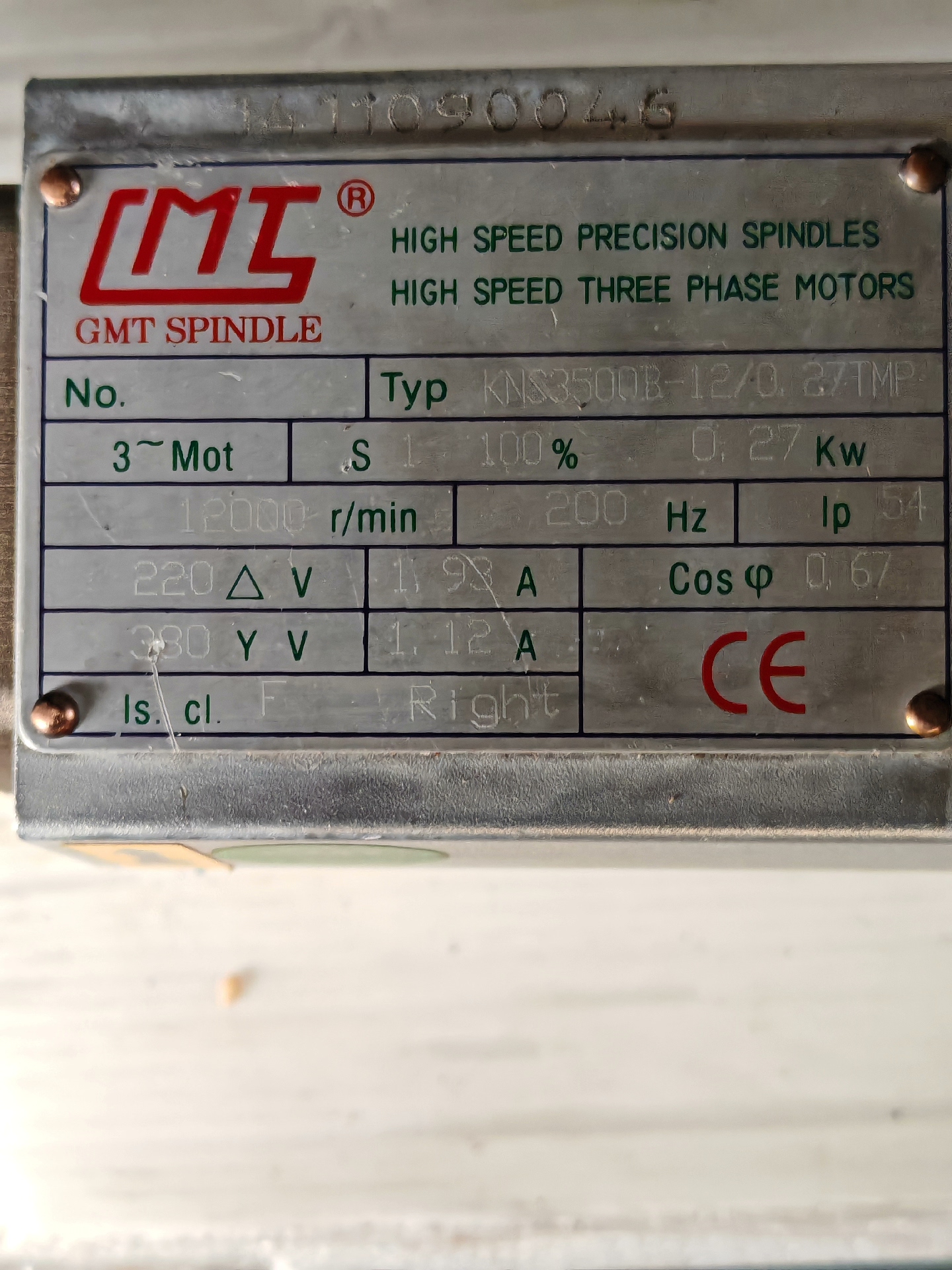 本产品为GMT品牌高速精密主轴电机,型号KNS3500B-12/0.27TMP,是一款性能稳定的工业级电机,成色漂亮,属于孤品,适合寻找特定型号的用户。