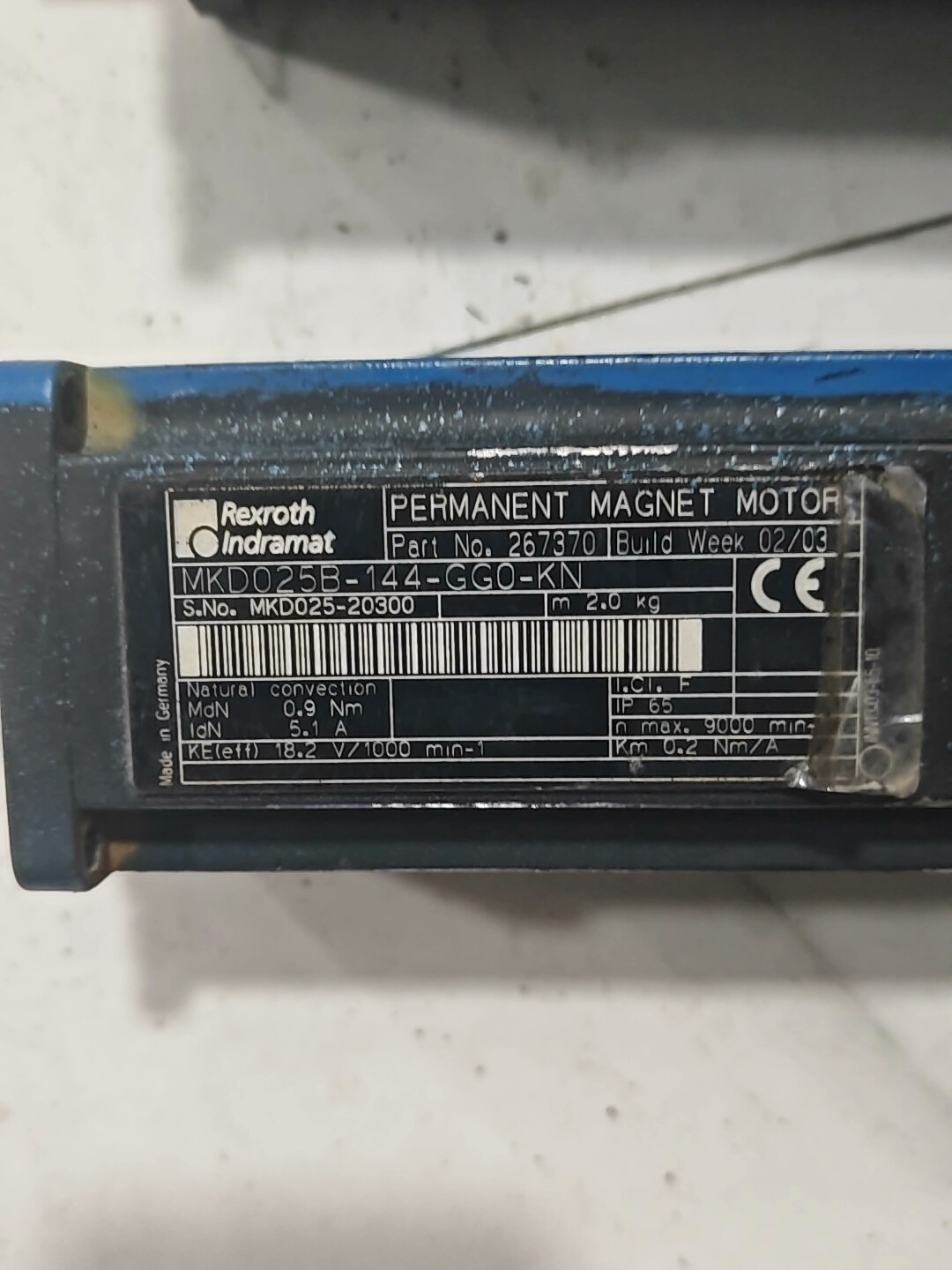 本产品为REXROTH 力士乐品牌下的MKD025B-144-GG0-KN型号伺服电机,属于二手拆机现货,共两个。该电机为工业级伺服驱动核心部件,适用于各类自动化设备的精确运动控制,具备高可靠性和稳定性,尽管外观有使用痕迹(如表面锈迹、污渍及接线端子氧化),但核心功能部件完好,可满足工业生产中的伺服驱动需求。