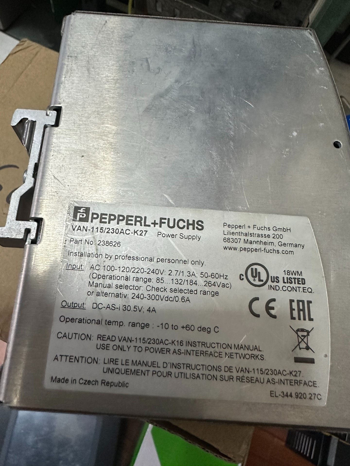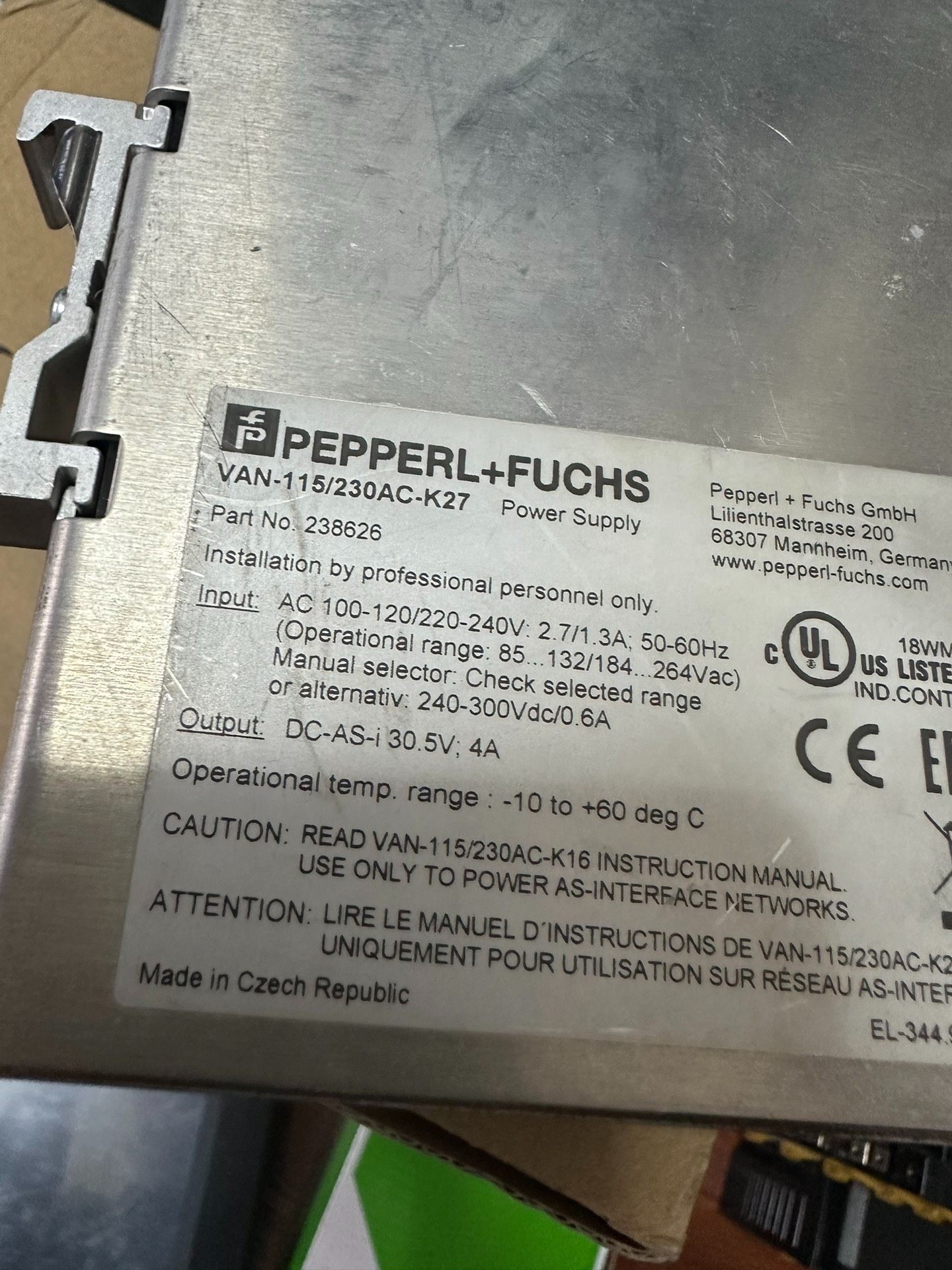 本产品为倍加福(PEPPERL+FUCHS)旗下AS-i总线电源模块,型号VAN-115/230AC-K27,部件号238626。作为工业自动化领域的关键供电设备,专为AS-i(Actuator-Sensor Interface)总线系统设计,提供稳定可靠的电源输出,保障传感器与执行器的高效通信与运行。