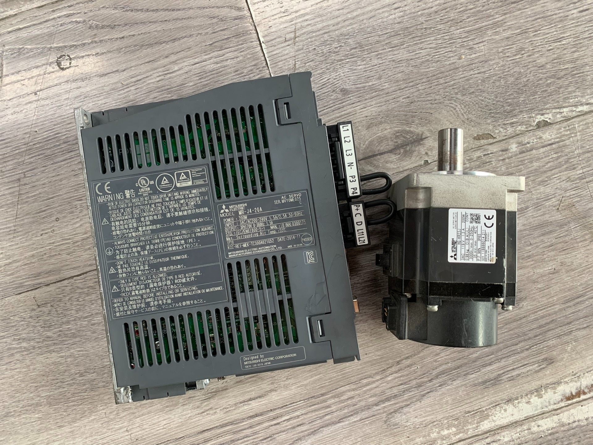 本套装包含三菱MR-J4-20A伺服驱动器与HG-KR23J伺服电机,是一套功率为200W的高精度伺服控制系统。驱动器采用先进的控制算法,配合高分辨率编码器电机,可实现快速、平稳的运动控制,广泛应用于工业自动化设备中。