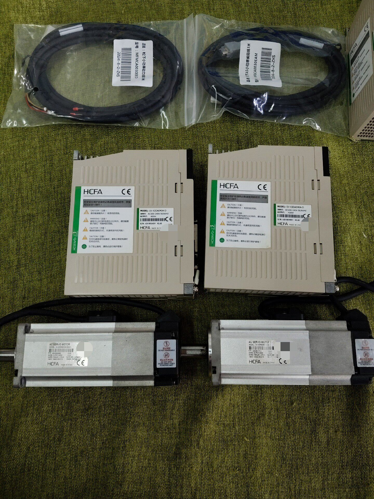 本产品为禾川品牌400W伺服系统套装,包含驱动器与电机,配套线缆齐全,实物拍摄,功能完好,现货供应。