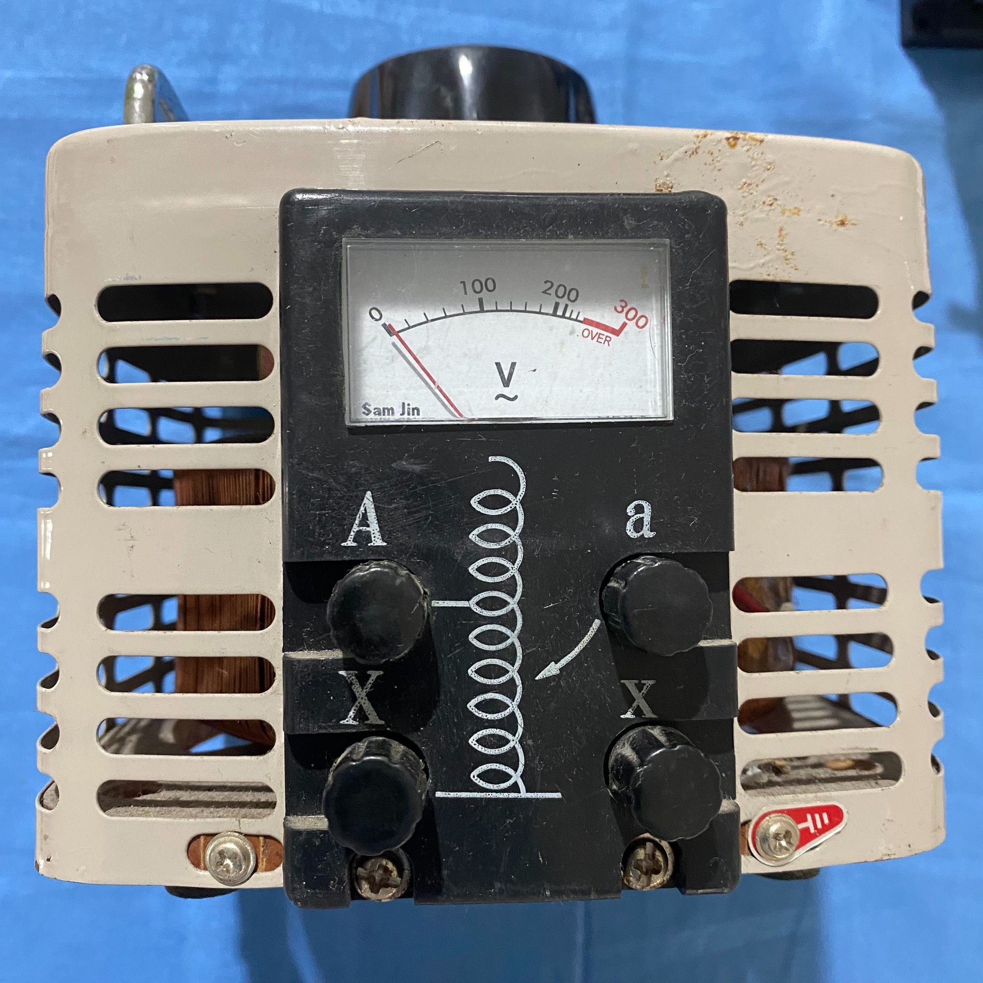 上海正宏 TDGC2-KVA 稳压器采用方形金属外壳设计,结构坚固耐用,具备良好的散热性能。设备正面配备旋钮调节装置,配合清晰的刻度盘(50-250V),可直观精确地进行电压调节。机身两侧设有固定安装孔,方便集成到各类电气控制系统中,顶部提手设计便于搬运与安装。