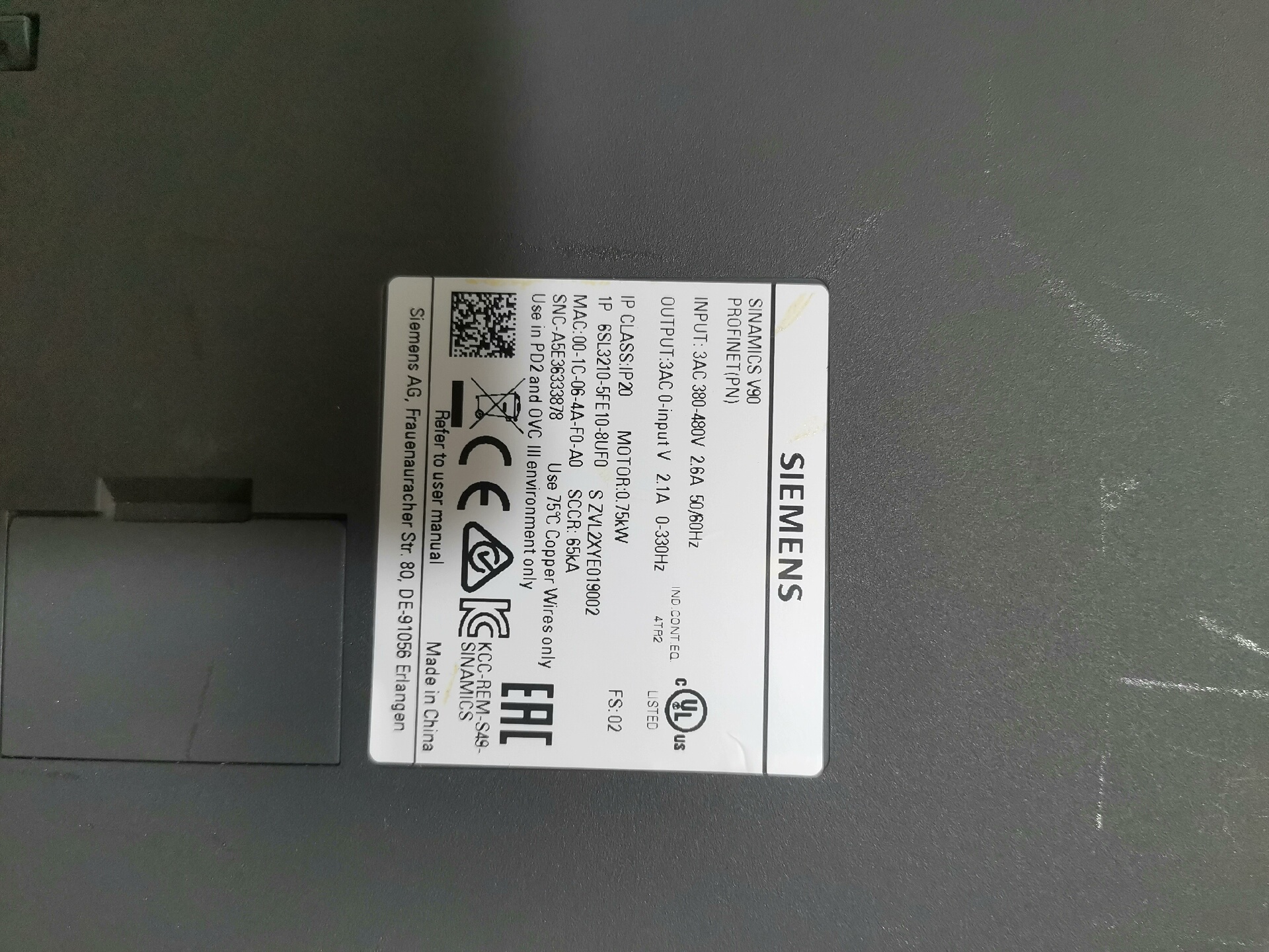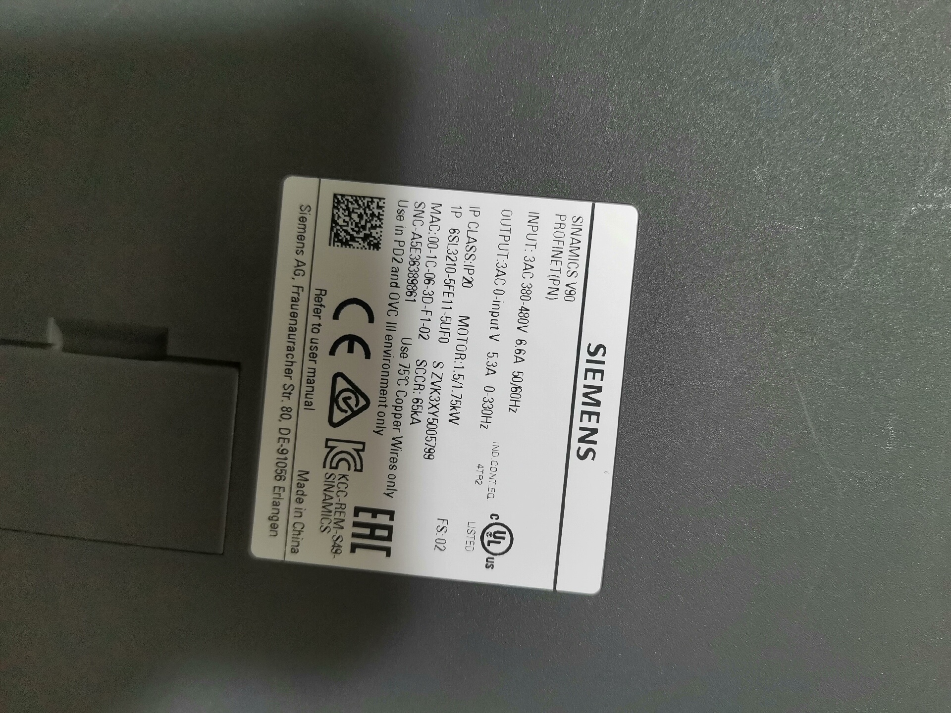 - 型号:6SL3210-5FE12-0UF0(2.0KW)、6SL3210-5FE11-5UF0(1.5KW)、6SL3210-5FE10-8UF0(0.75KW)
