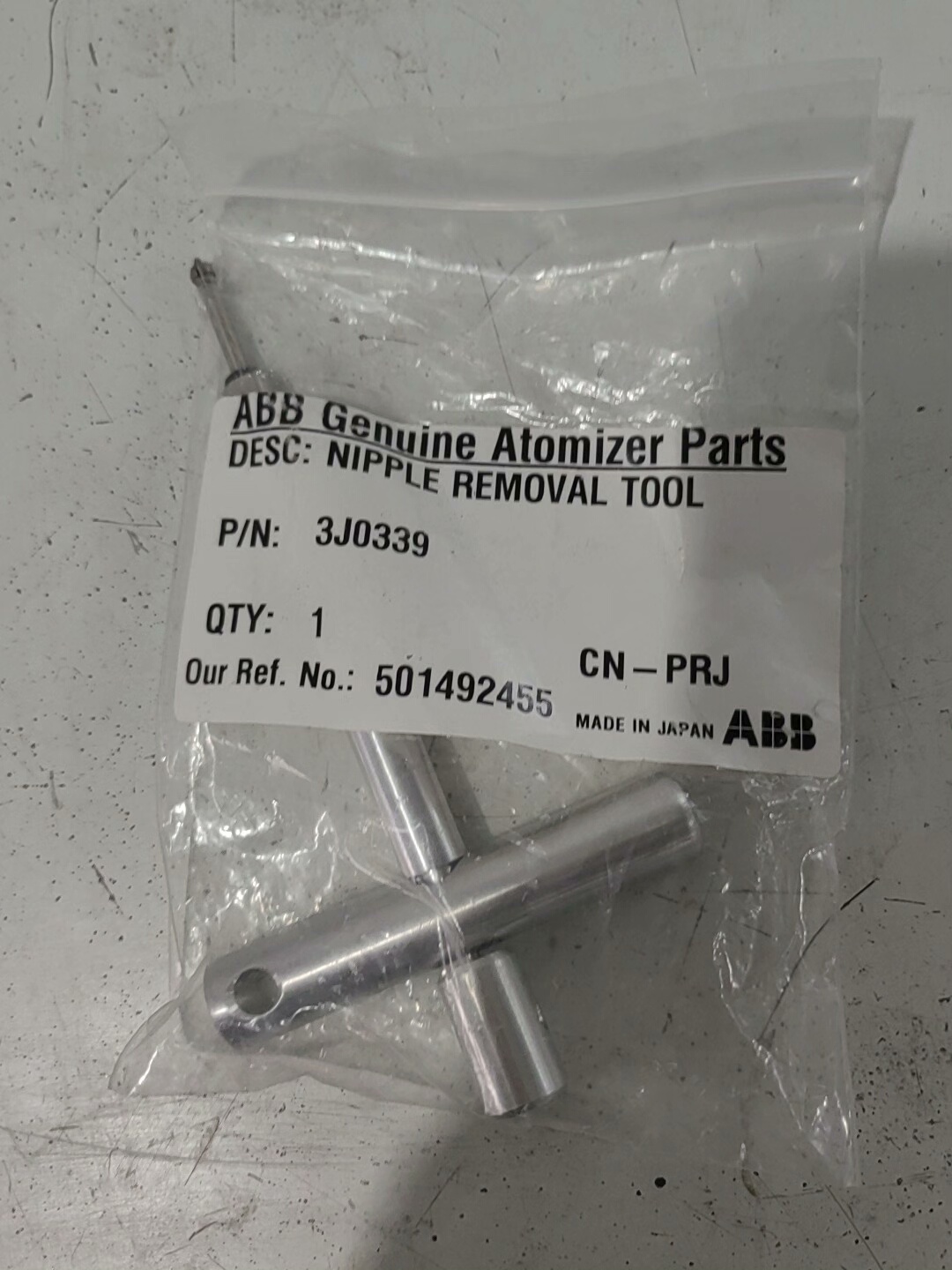 ABB 机器人喷涂工具扳手(型号:4J0928)是专为ABB机器人喷涂系统设计的原装配件,采用优质金属材质制造,结构坚固耐用,适用于喷涂工具的日常安装、维护及拆卸操作。产品表面经过精细处理,带有防滑滚花旋钮,便于操作人员握持和施力,确保在工业环境下的稳定使用。