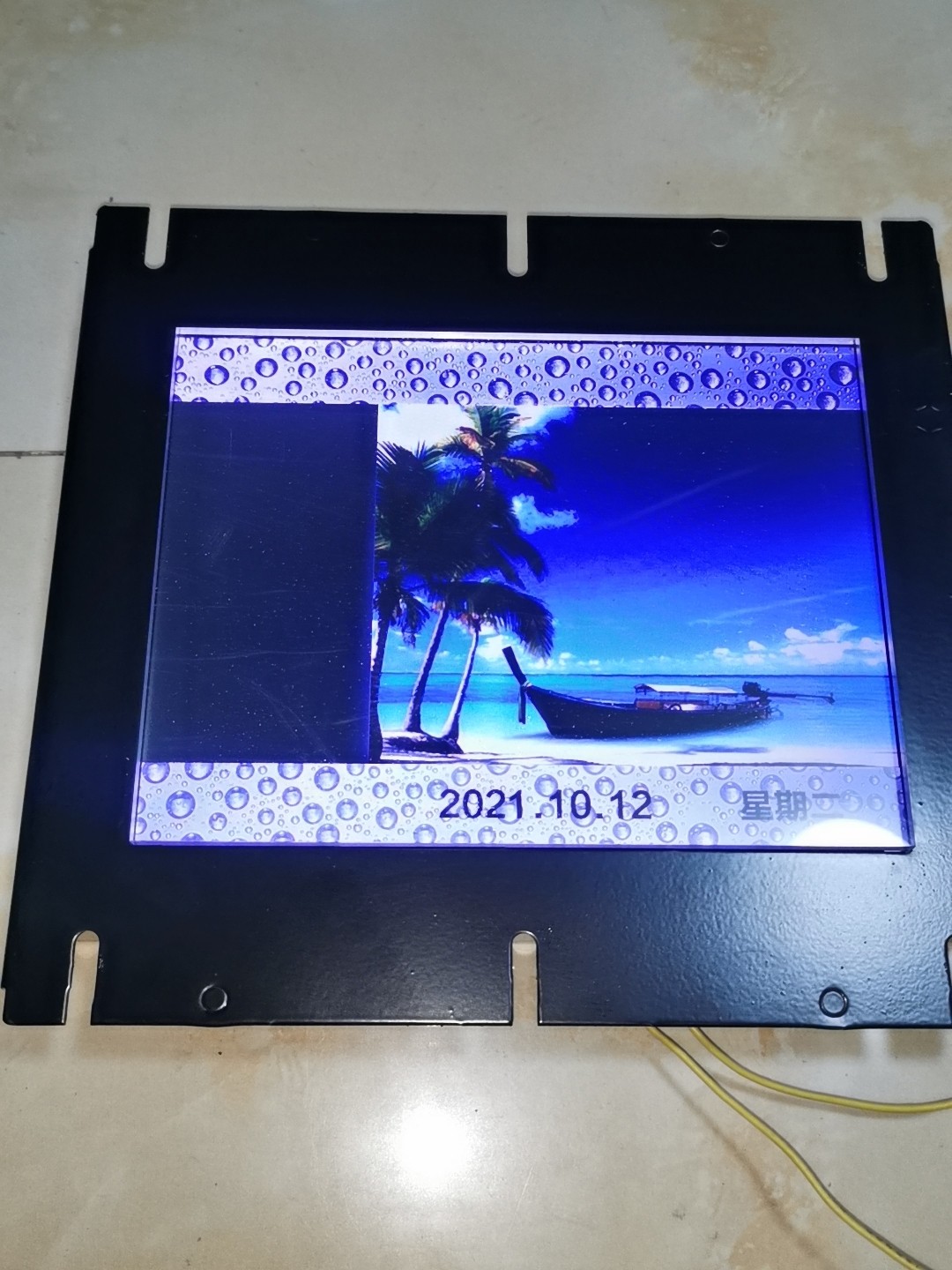 本产品为电梯轿厢专用液晶显示屏,属于二手拆机配件,从几乎全新的电梯上拆卸而来,外观保持良好,黑色外壳设计,带有安装孔,便于电梯轿厢内固定安装。设备功能正常,可稳定显示日期、时间、安全提示等信息,满足电梯日常运行中的信息展示需求。
