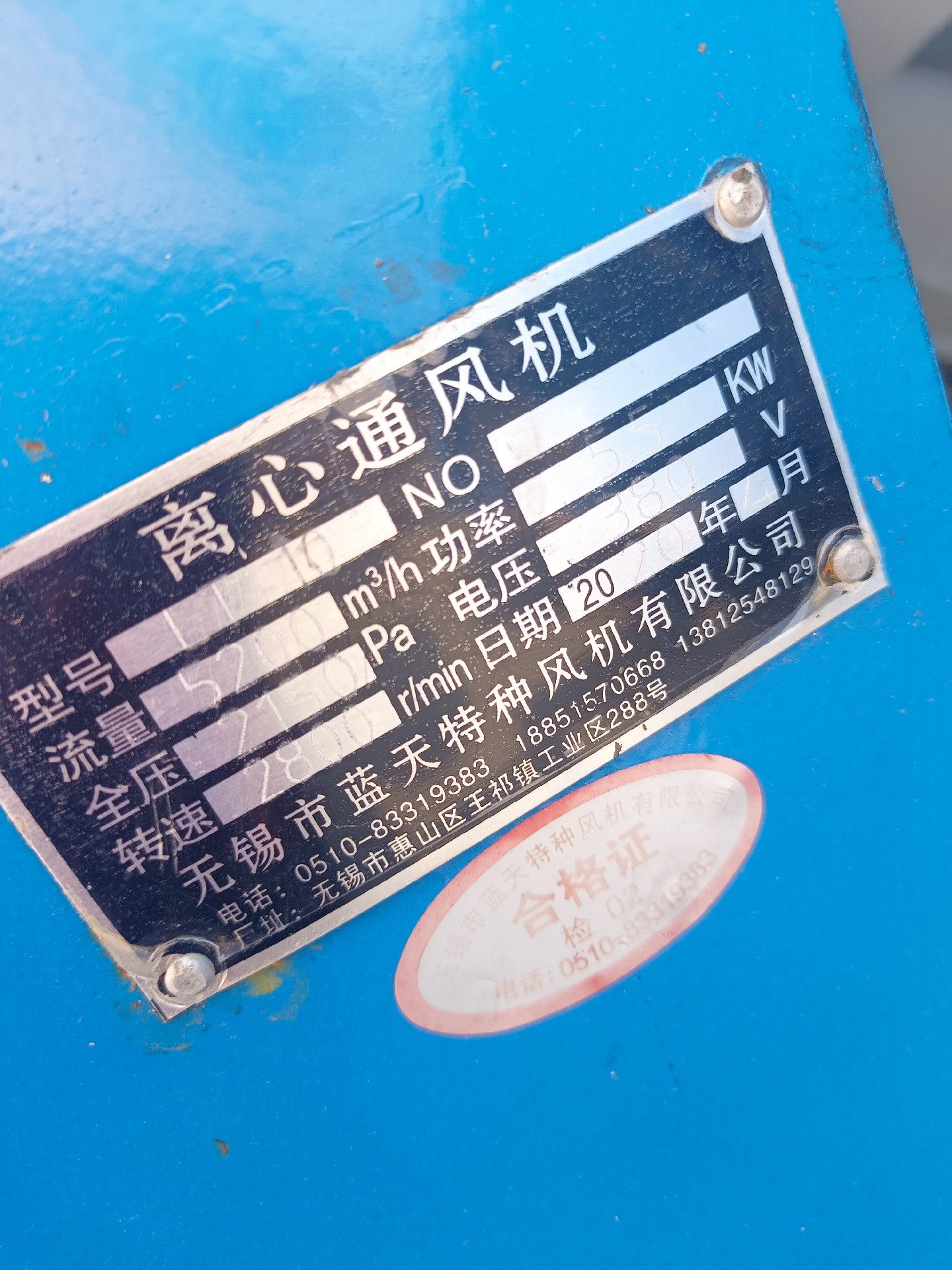 该5.5千瓦离心风机采用坚固的蓝色外壳与灰色电机设计,结构紧凑且稳定,配备稳固底座,确保运行过程中的稳定性。风机整体做工扎实,能够适应工业环境下的长期使用,具有较好的耐用性和可靠性。