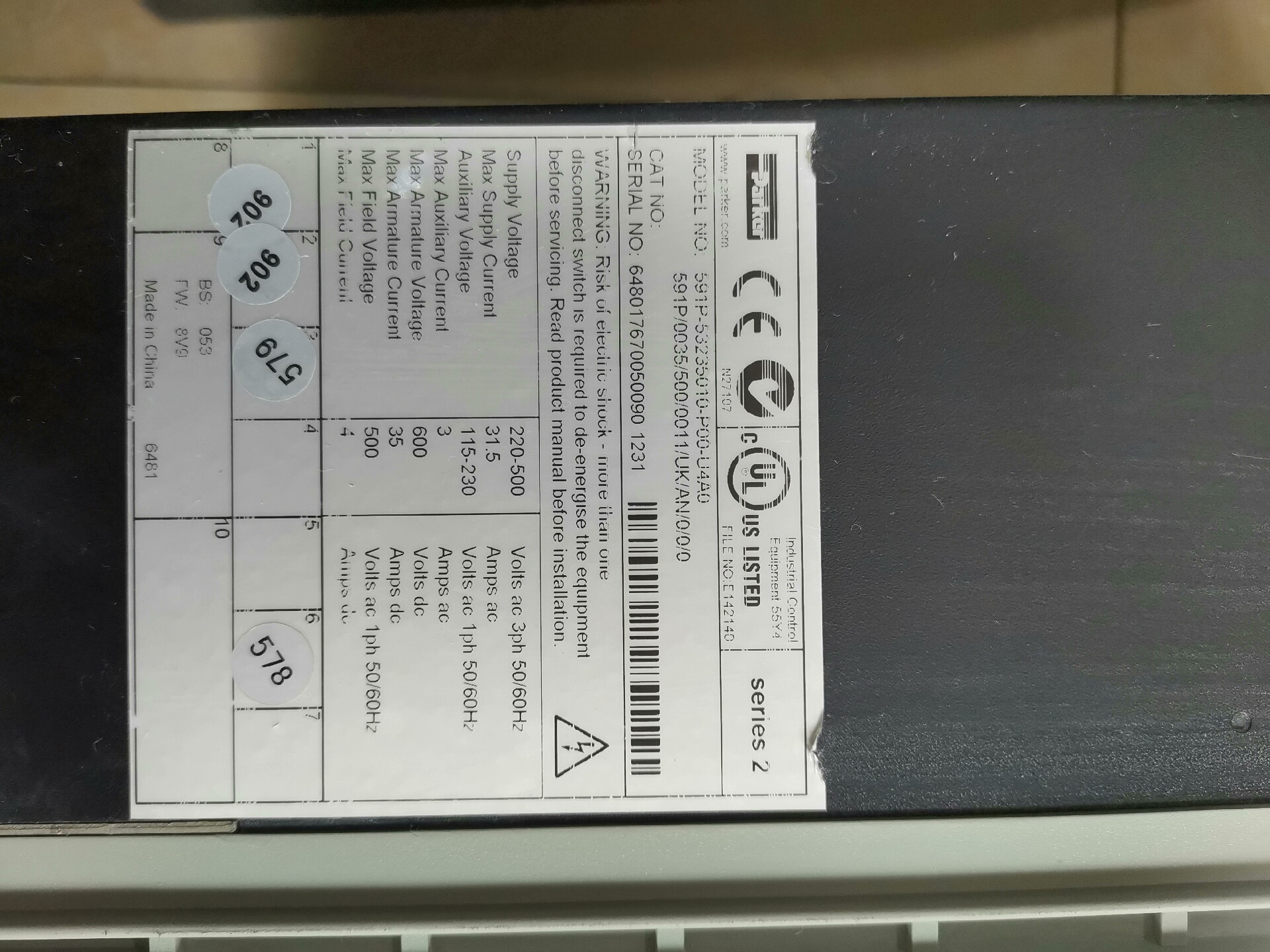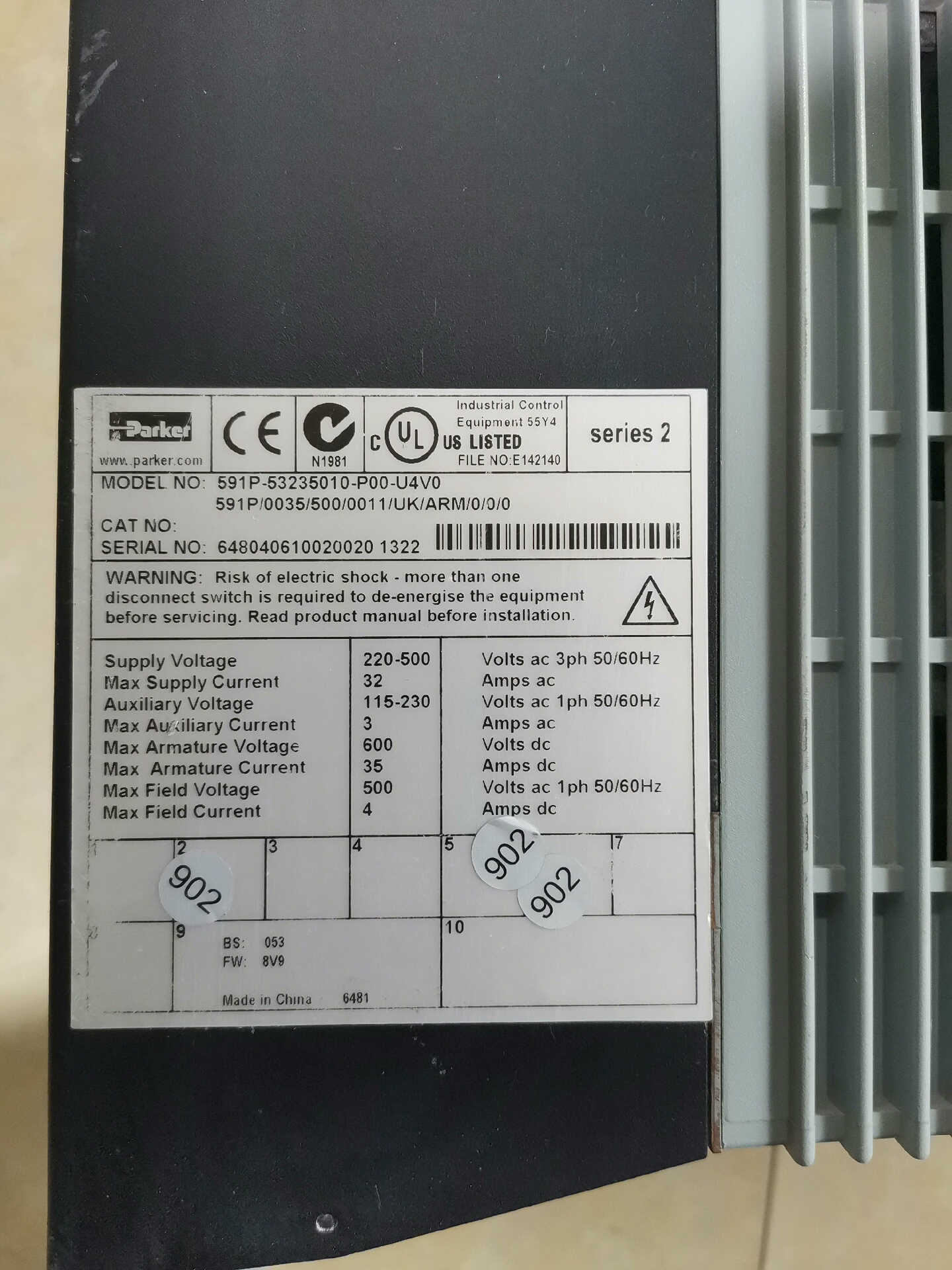 591P-53235010-P00-U4V0 591P/0035/500/0011/UK//ARM/0/0/0拆机派克直流调速器,成色如图,质量包好,需要直接拍