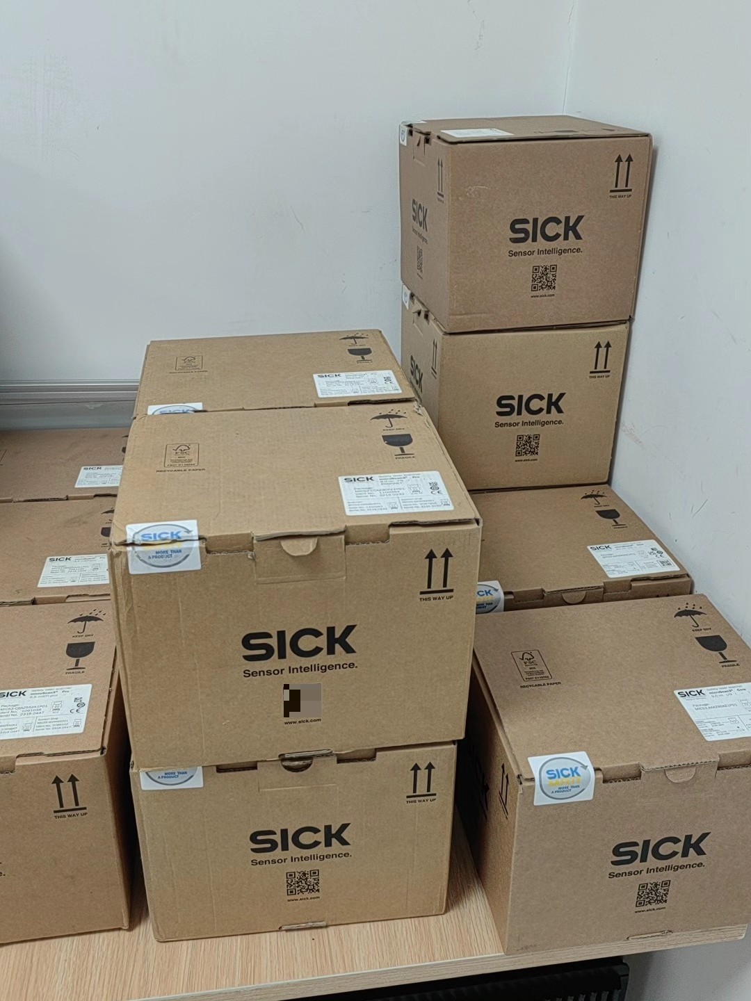 本产品为德国SICK公司生产的microScan3 Core系列安全激光扫描仪,型号为MICS3-AAAZ90AZ1P01,产品ID为1089492,全新未开封,包装完好,具备防潮(KEEP DRY)和易碎(FRAGILE)标识,确保运输与存储安全。