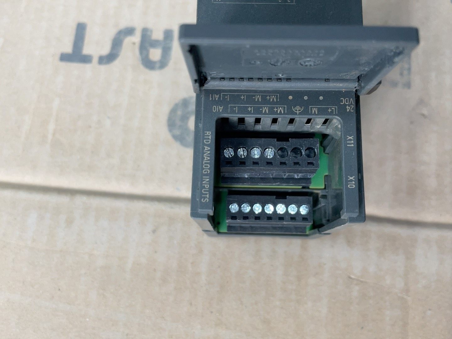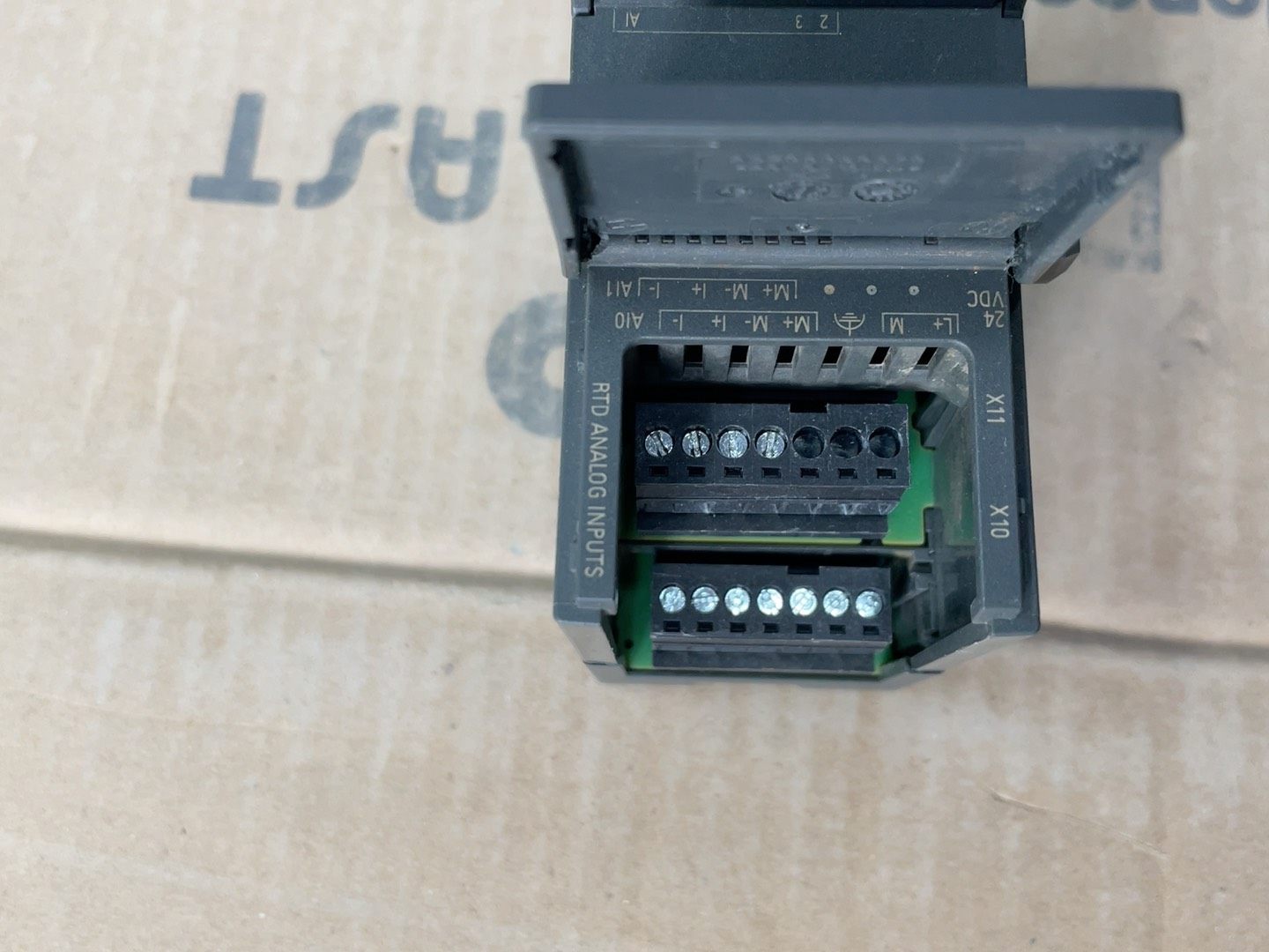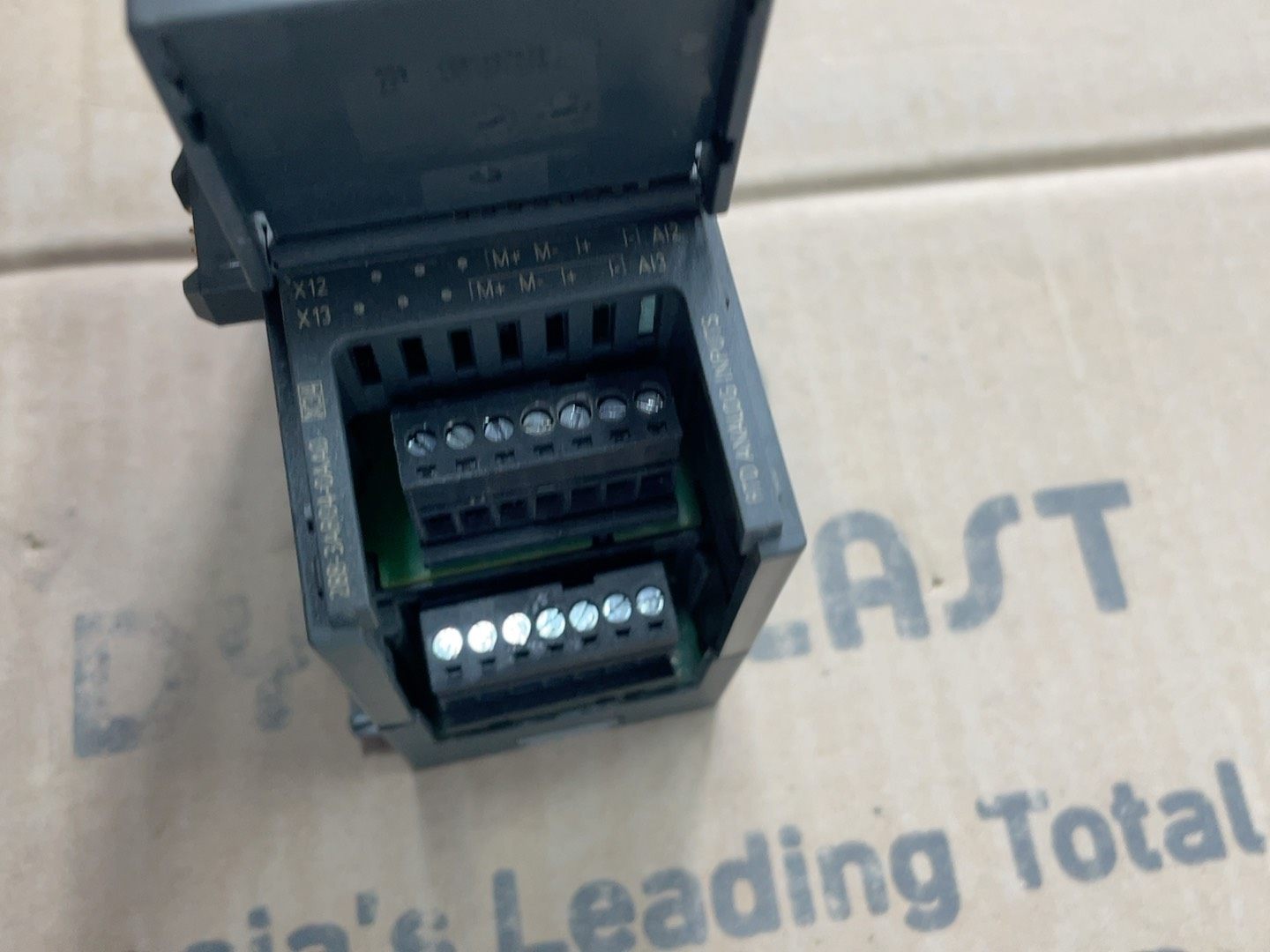 模块整体为深灰色工业外壳,表面印有“SIMATIC S7-200 SMART”及“EM AR04”标识。上壳挂角处存在裂纹,成色一般,但不影响内部功能及安装使用,发货时将以实物图为准。