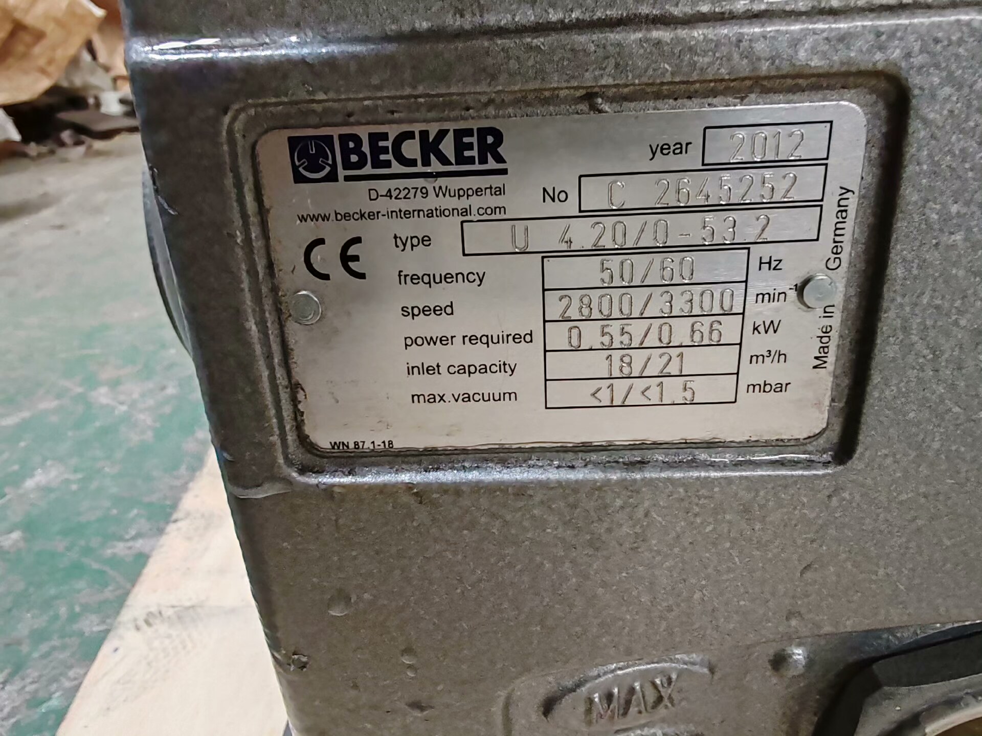 德国进口贝克BECKER,U4.20/53油式旋片真空泵 0.55KW /0.66kw,电压三相220/380V,吹吸可用,拆机原装,感兴趣私聊,不包邮