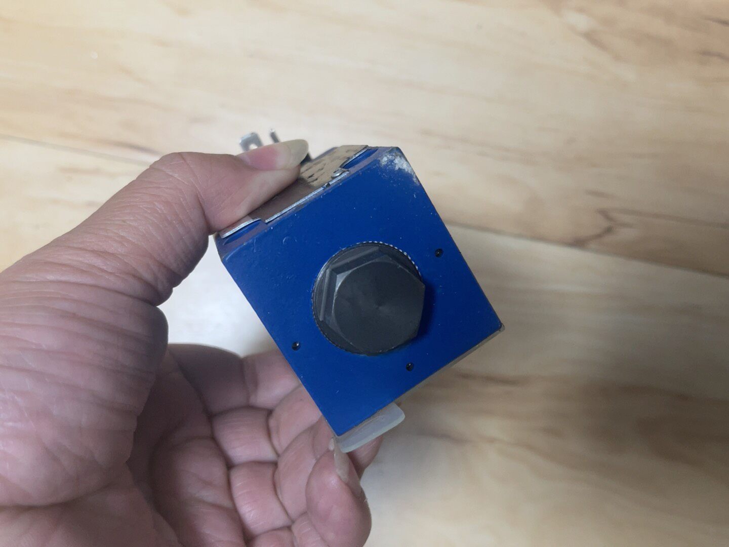 - 结构设计:主体采用银色金属材质,具备良好的耐压性和抗腐蚀性;蓝色基座部分集成安装孔,便于系统集成;顶部黑色旋钮可用于手动调节,电气插头接口方便接线。