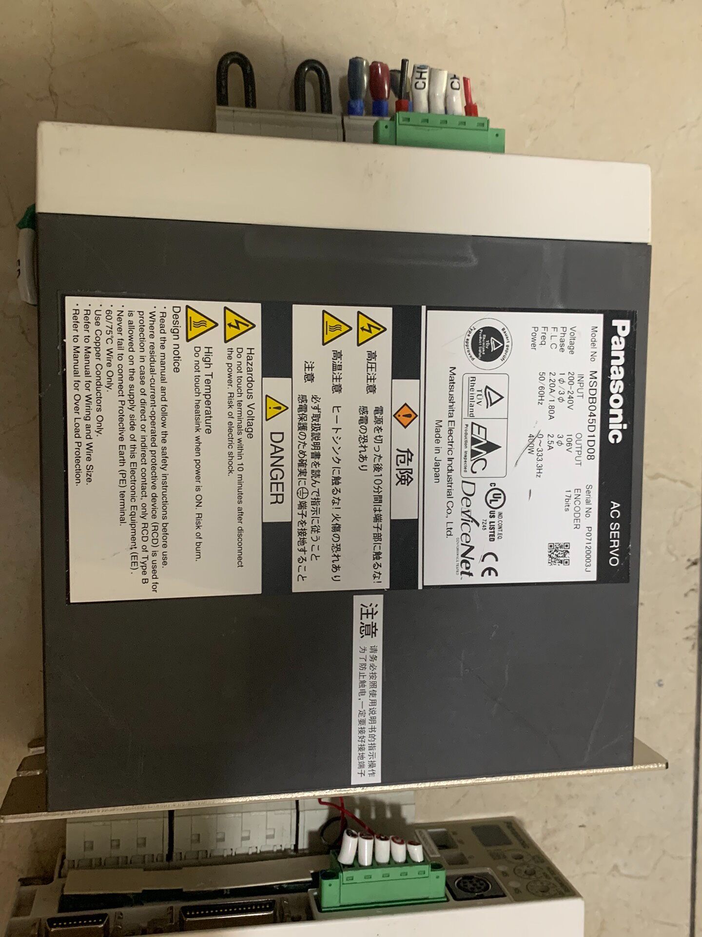 型号:MSDB045D1D08品牌:Panasonic松下类型:伺服驱动器状态:二手拆机,功能包好